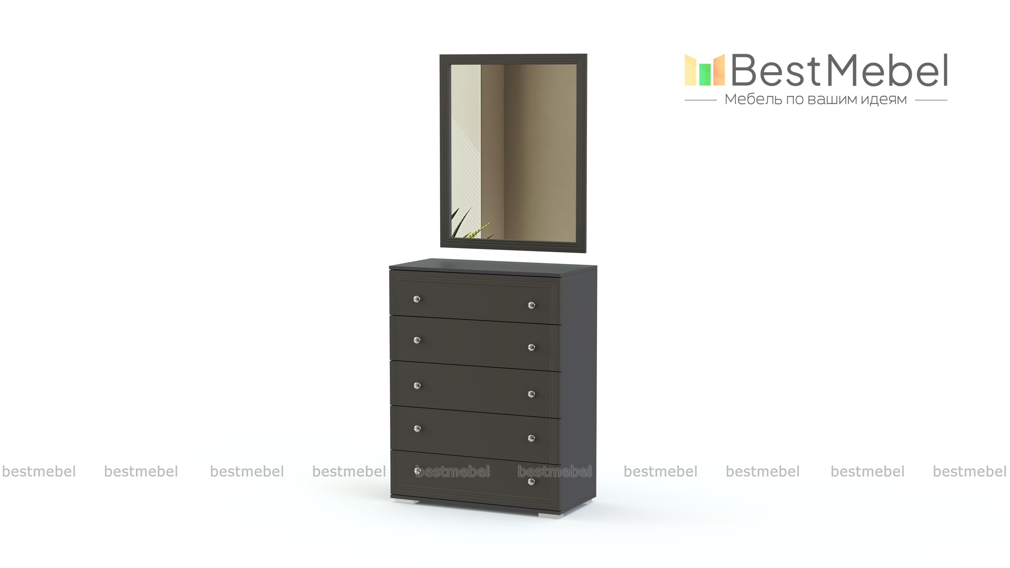 Комод Карина 2 BMS подходит для меблировки небольших помещений благодаря компактным размерам. Модель оборудована пятью выдвижными ящиками для хранения домашнего текстиля и разнообразных бытовых мелочей, а дополнение в виде навесного зеркала позволяет использовать его как туалетный столик. Выполненный из материалов в светлых белых тонах, комод декорирован неброской рамочной фрезеровкой и оснащен ручками-кнопками. Купить комод Карина 2 BMS приглашаем в наш интернет-магазин с выбором цвета и фурнитуры.