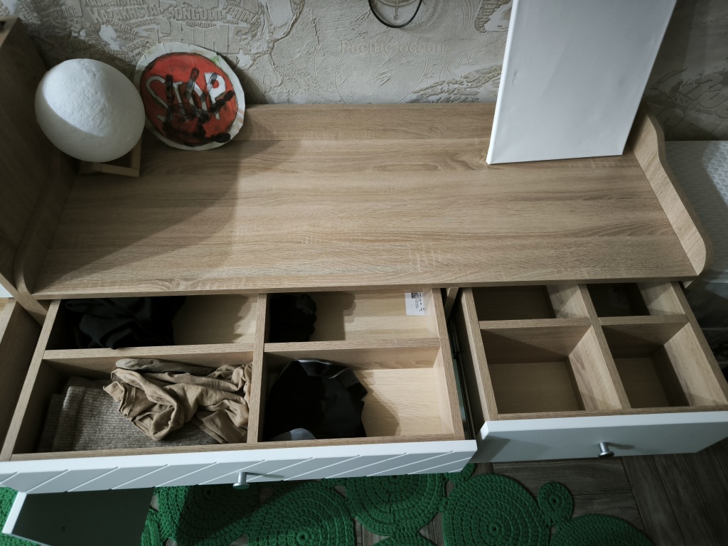 По опыту с компьютерным столом знал, что сборку надо начинать с получения цветной схемы, т.к. с приложенным чертежом ничего не получится. Отдельная история - это доставка, где экспедитор не знает количество упаковок, однако все прошло гладко.В итоге я разложил все детали по двум отдельным кучкам, соответствующие каждому комоду. Выяснилось, что даже на цветной схеме не указано 3 позиций, пришлось обращаться в гарантийный отдел. Собрал довольно быстро, благо есть опыт сборки мебели. В целом комоды понравились, есть конечно некоторые недочёты. Кстати, для ножек (которых 9) нет подпятников, чтобы не царапать пол