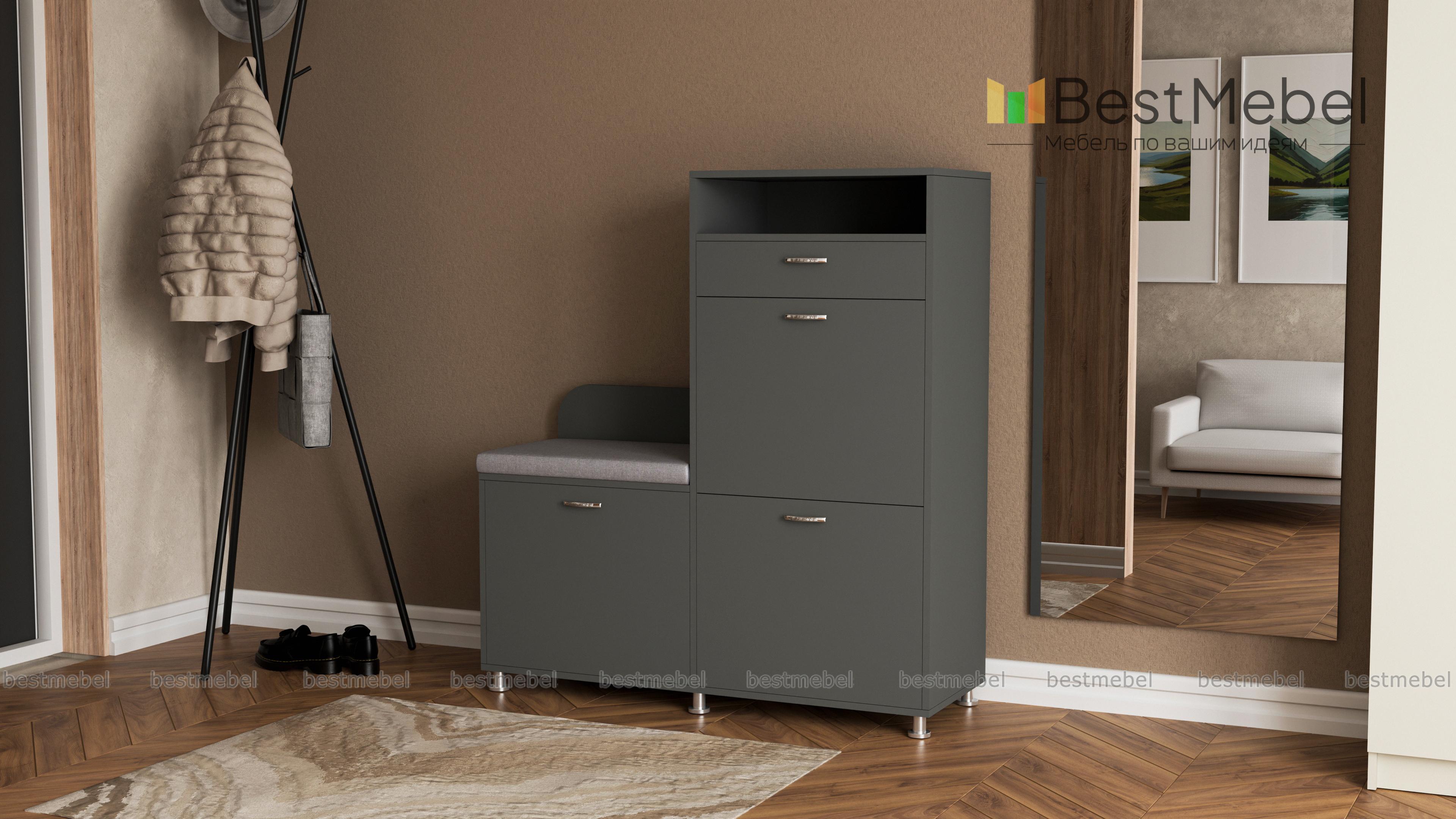 Отличная обувница по соотношению цена-качество. Наличие двух отделений для обуви, ящика для мелочей, полки и большого отделения под сиденьем позволяет разместить всю сезонную обувь и аксессуары. Нельзя не отметить и минусы. 1 - отсутствует услуга сборки при доставке мебели, сборщиков приходится вызывать отдельно. 2 - на поверхности всех деталей много капель клея, очистка которого отнимает немало времени и сил.