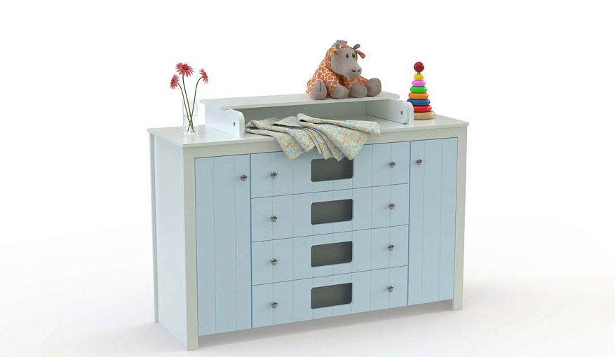 Пеленальный комод Веста Деко 3 BMS сочетает в себе яркий дизайн и продуманный функционал. Широкая модель с украшенным вертикальной фрезеровкой фасадом оборудована двумя распашными отделениями и четырьмя выдвижными ящиками с «окошками», обеспечивающими хороший обзор содержимому. Широкая верхняя панель с откидным пеленальным столиком в центре позволяет с комфортом ухаживать за младенцем, разместив под рукой необходимые средства гигиены. Купить пеленальный комод Веста Деко 3 BMS приглашаем к нам в интернет-магазин.