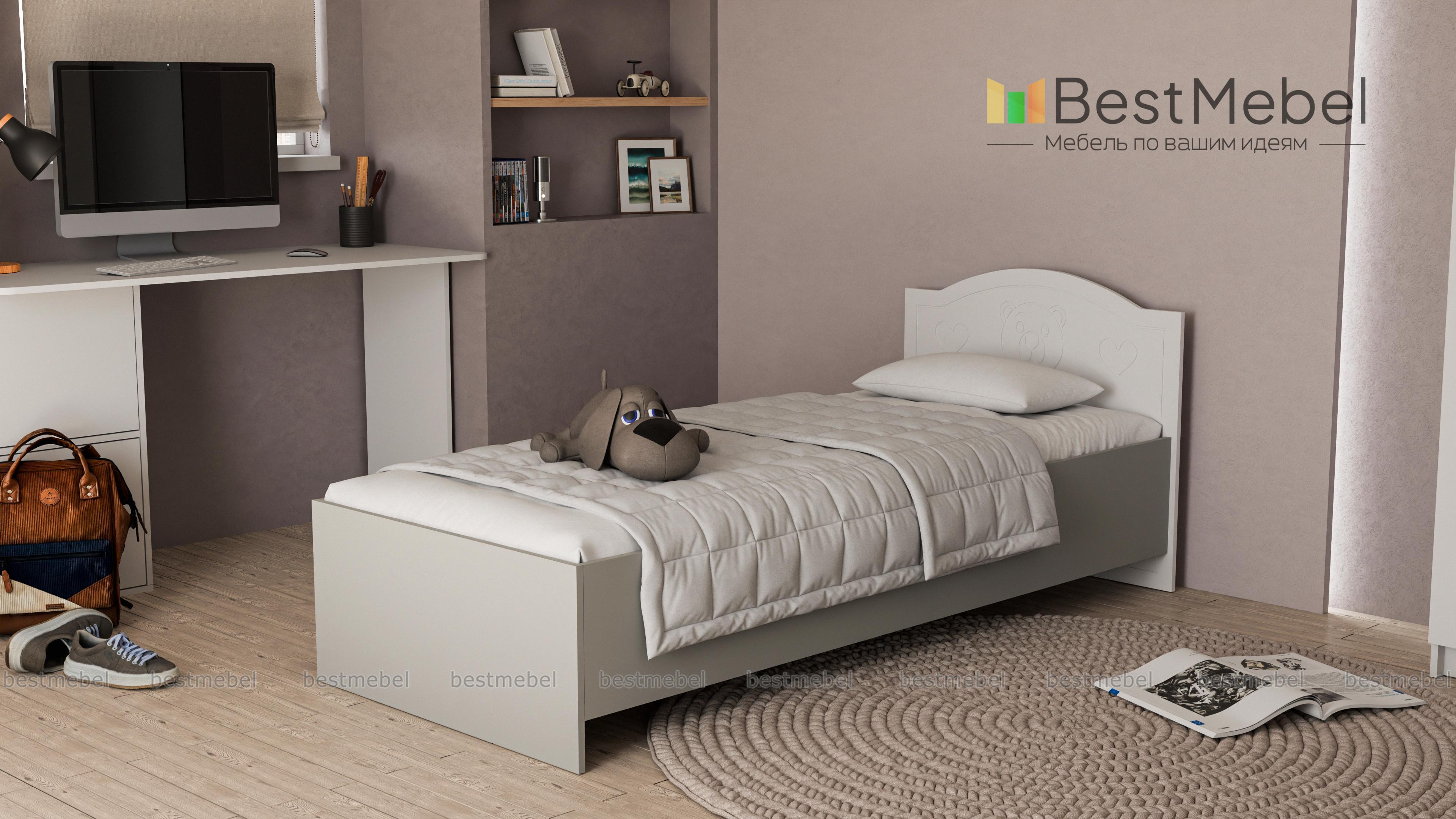 Кровать Мишка Вальтер BMS – романтичная модель для маленькой принцессы. Светлые пастельные тона и удобное основание подарят ребенку сладкие ванильные сны. Изюминкой изделия является оригинальный дизайн изголовья, украшенного мордочкой очаровательного медвежонка. По желанию заказчика кровать может быть дополнена выдвижными ящиками для белья или бортиком. А в комплекте с симпатичной тумбочкой в аналогичном стиле данная модель покорит сердца даже самых капризных принцесс. Купить кровать Мишка Вальтер BMS по минимальной цене можно на нашем интернет – портале.