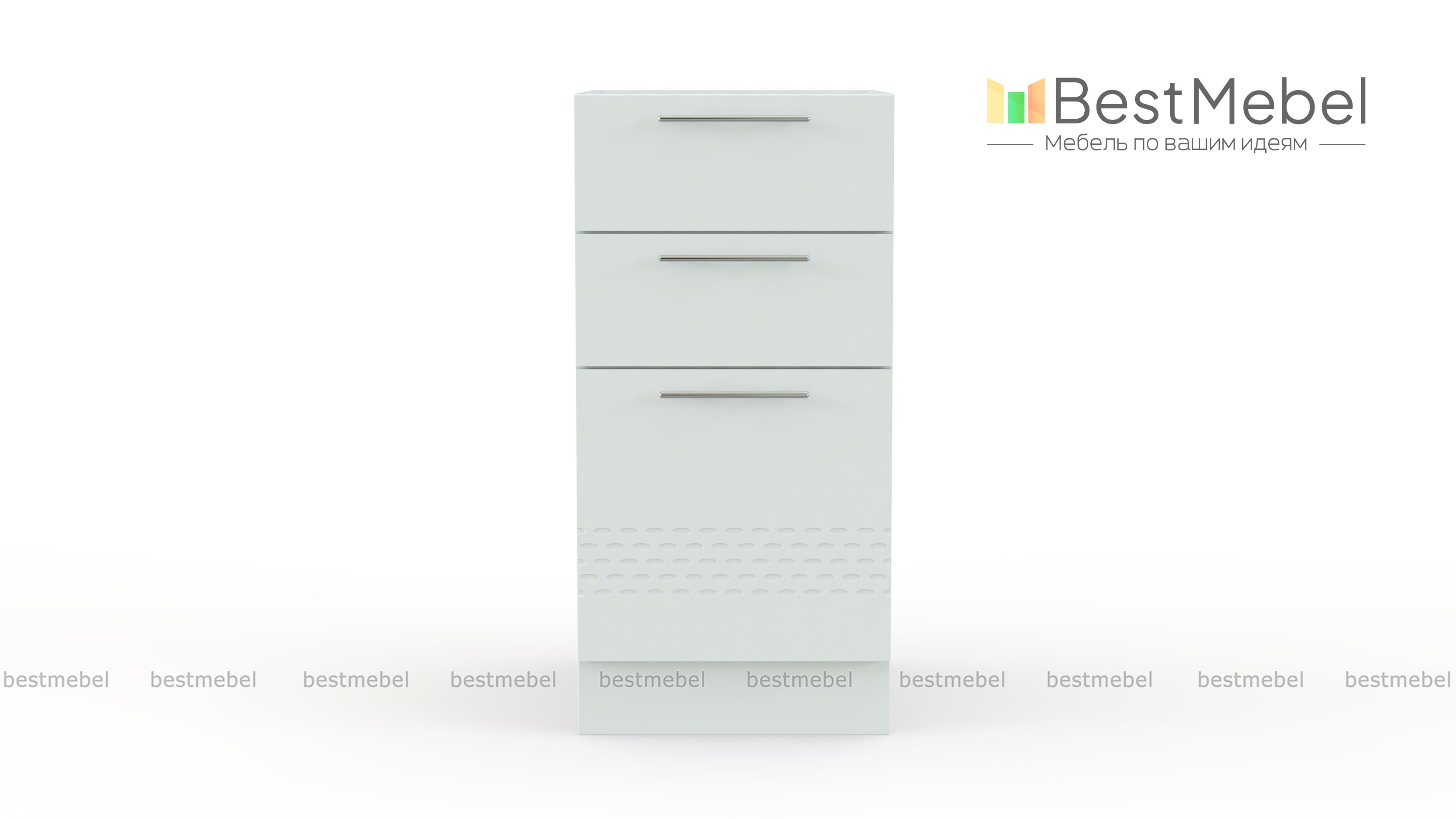 Шкаф нижний 300мм 3 ящика Капля BMS представляет собой небольшую по ширине тумбу, которая поможет оптимизировать хранение мелочей и гармонично впишется в малогабаритные кухни. Модель оборудована тремя выдвижными ящиками разных размеров и удобна для столовых приборов и необходимых под рукой кухонных принадлежностей. Матовые фасады шкафа, выполненные в белом оттенке и декорированные рельефом, создадут позитивную атмосферу и надолго сохранят эстетичный вид благодаря износостойким материалам. Купить шкаф нижний 300мм 3 ящика Капля BMS приглашаем в наш интернет-магазин.