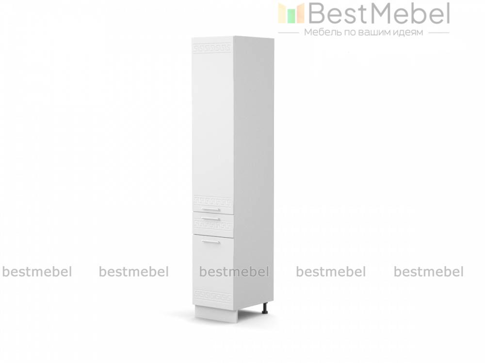 Шкаф-пенал 1 ящик 400 Греция BMS – это компактные размеры, отличная вместительность и демократичная цена. Высокий узкий шкаф оборудован двумя распашными отделениями с полками для продуктов и кухонной утвари и выдвижным ящиком, удобным для мелких вещей. Фасады в белом матовом оттенке с орнаментом не только эффектно смотрятся, но и надолго сохранят эстетичный вид благодаря износостойким материалам. Купить шкаф-пенал 1 ящик 400 Греция BMS, простой в уходе и надежный в эксплуатации, приглашаем недорого в наш интернет-магазин.