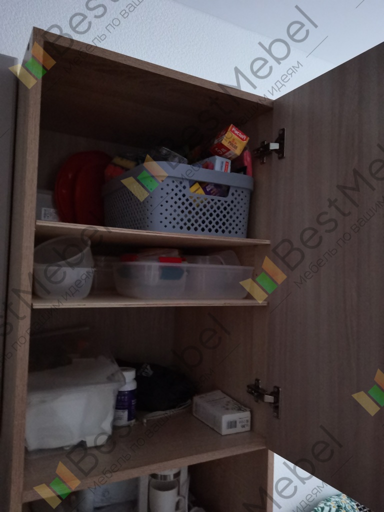 Качество💥. Заказ 1255524 был получен без повреждений и в срок.Удобно что шкаф в приложении можно было заказать по своим замерам.Сборка легкая и понятная.Полочки мы на свои заменили. В магазине выбрали нужную фанеру и там же распил получили. Ручки тоже поменяли. Очень вместительный.Спасибо большое.