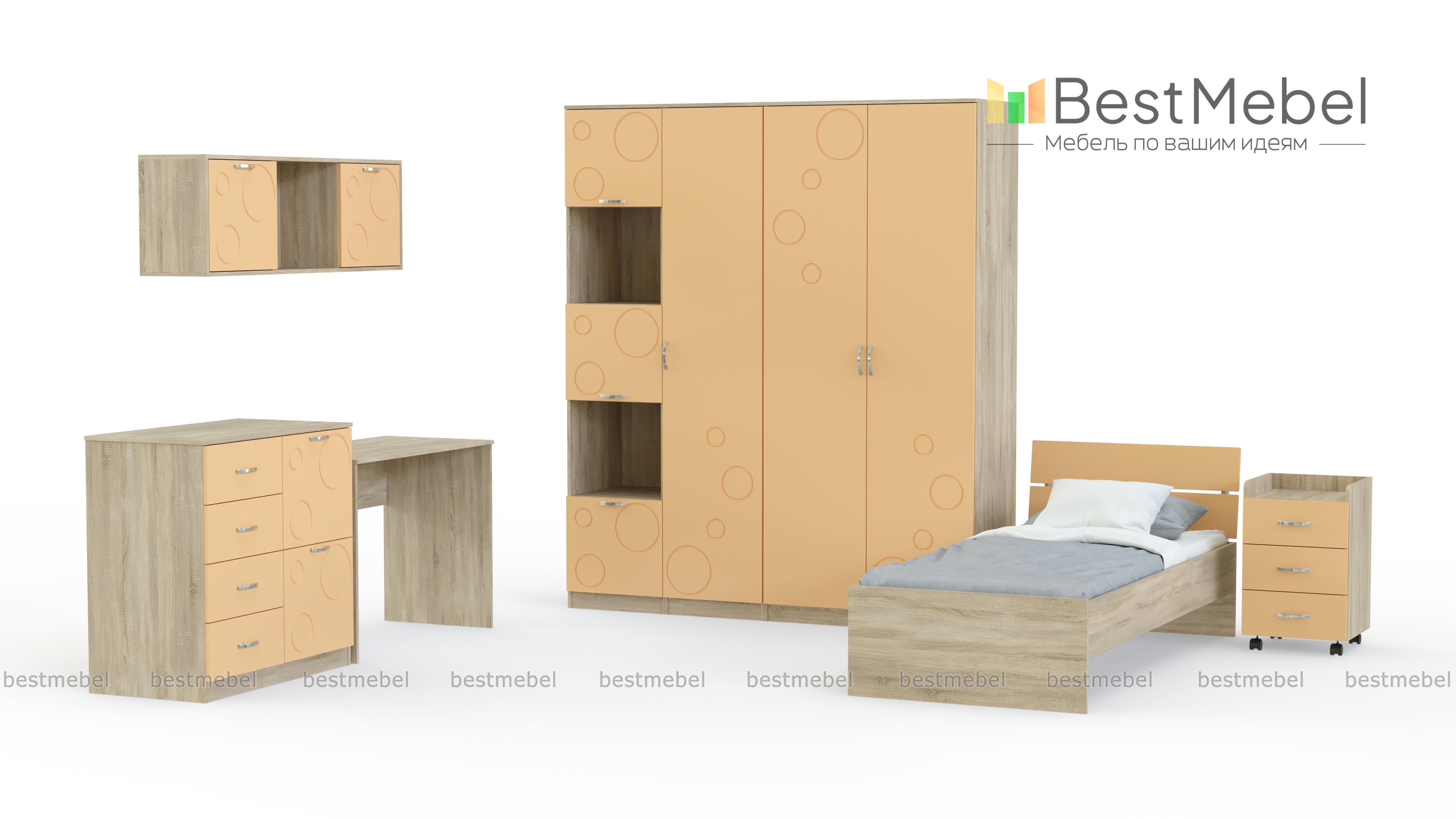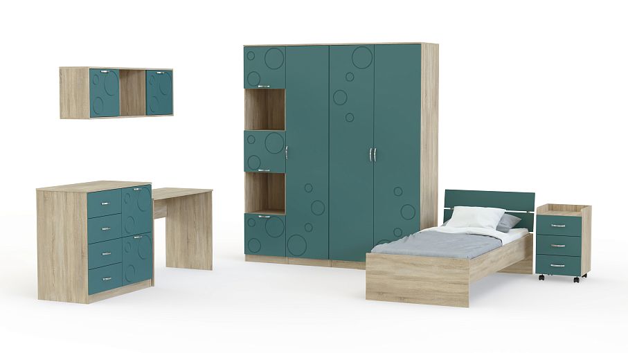 Детская Спринт 1-11 BMS, выполненная в сочетании светлых оттенков под массив дерева и ярких аквамариновых фасадов, непременно понравится детям и родителям. Модель станет отличным вариантом для комнаты школьника, разместит все необходимое и создаст комфортную для отдыха и учебы атмосферу. В комплекте кровать с прикроватной тумбой, письменный стол, вместительный комод, навесная полка с открытыми и глухими отделениями, двухдверный шкаф и два пенала – бельевой и комбинированный. Купить детскую Спринт 1-11 BMS вы сможете недорого в нашем интернет-магазине, подобрав оптимальные параметры.