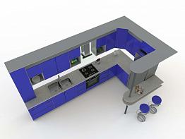 Угловая кухня с барной стойкой Лазурь BMS