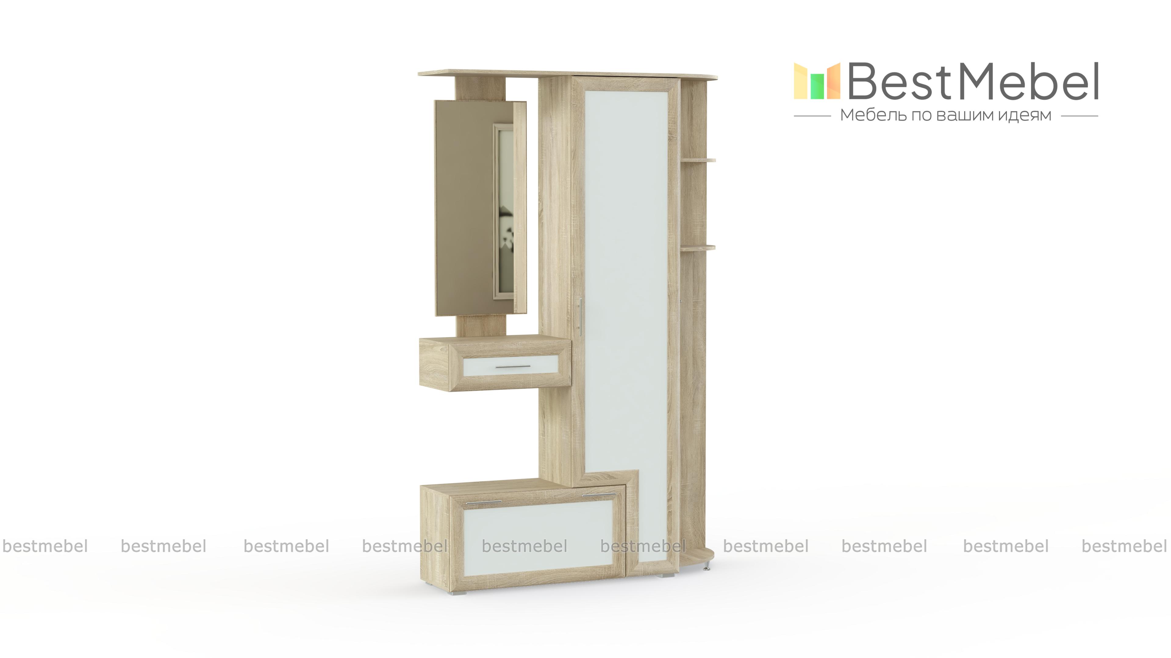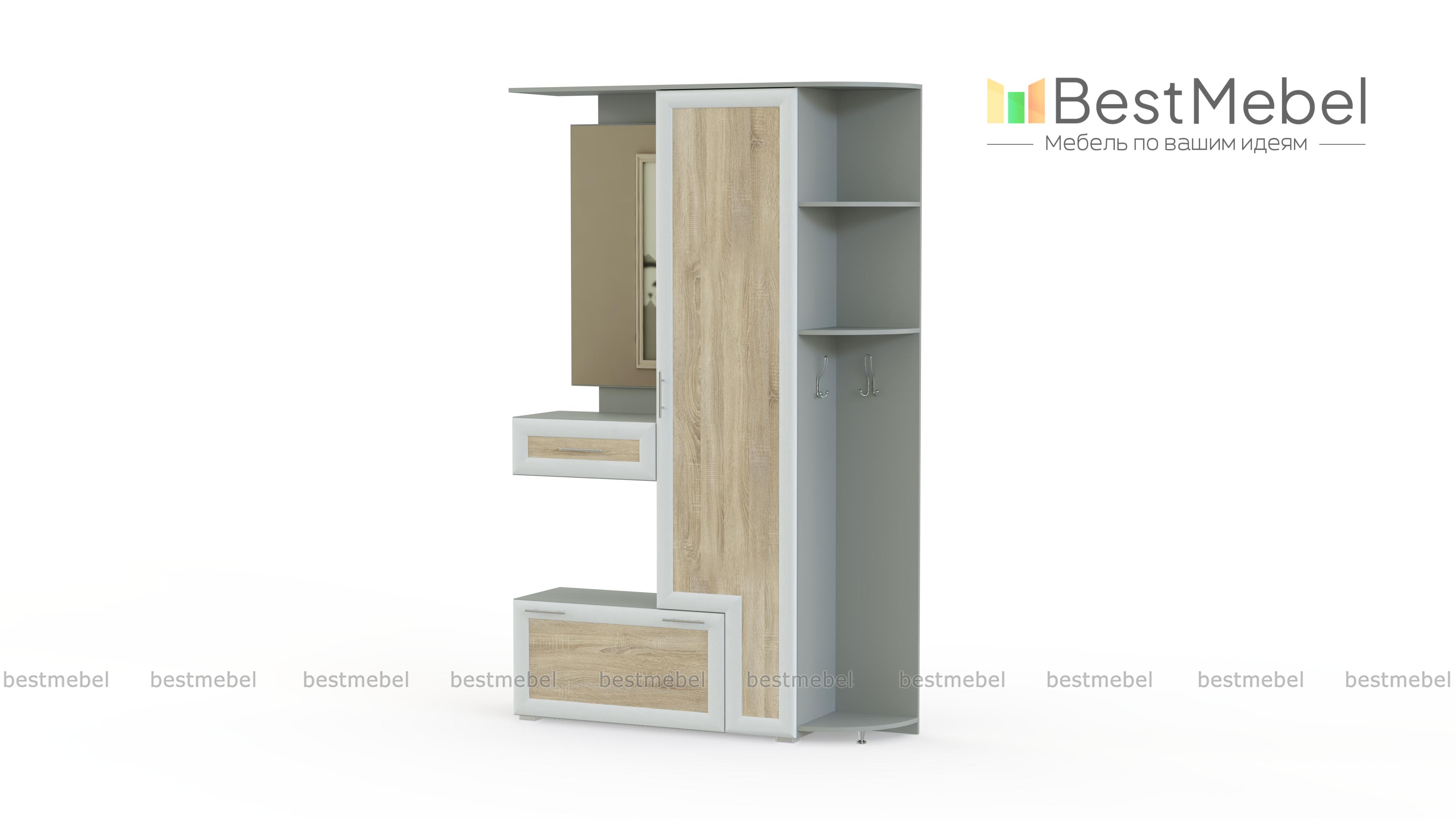 Прихожая Млайн 10 – пример современной, стильной, качественной мебели. Модель хорошо впишется в интерьер Вашего помещения. Изделие имеет шкаф для одежды, несколько полок для разных аксессуаров, средств по уходу за собой и других предметов. В комплектацию входит зеркало, 2 выдвижных ящика, где можно разместить личные вещи. Базовая модель привлекает своим цветовым решением, но Вы можете выбрать нужные Вам цвета и параметры индивидуально. Купить прихожую можно у нас на сайте.