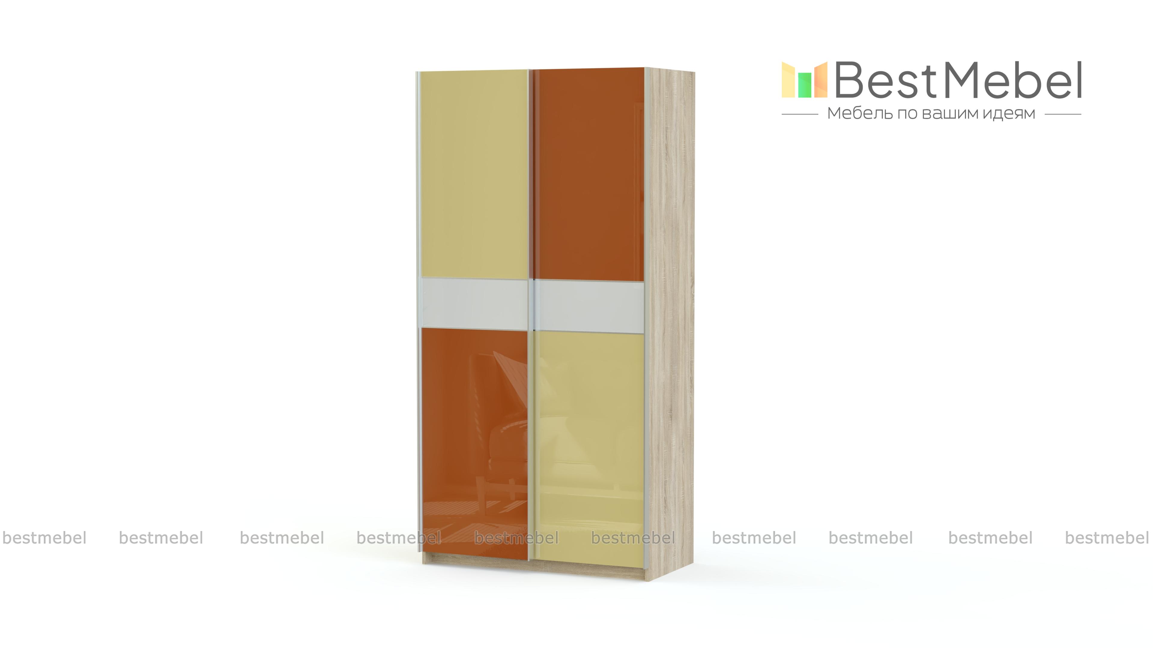 Яркие, сочные фасады шкафа-купе Палестина 68 BMS не оставят равнодушными поклонников стильных, минималистичных решений. Декоративное стекло, которым покрыты раздвижные дверцы, отличается не только эффектным внешним видом, но и влагостойкостью, и устойчивостью к механическим повреждениям. Платяное отделение со штангой и с полками - для белья позволят аккуратно разместить одежду, обувь и другие предметы гардероба. В нашем интернет-магазине вы сможете подобрать для шкафа оптимальные параметры.