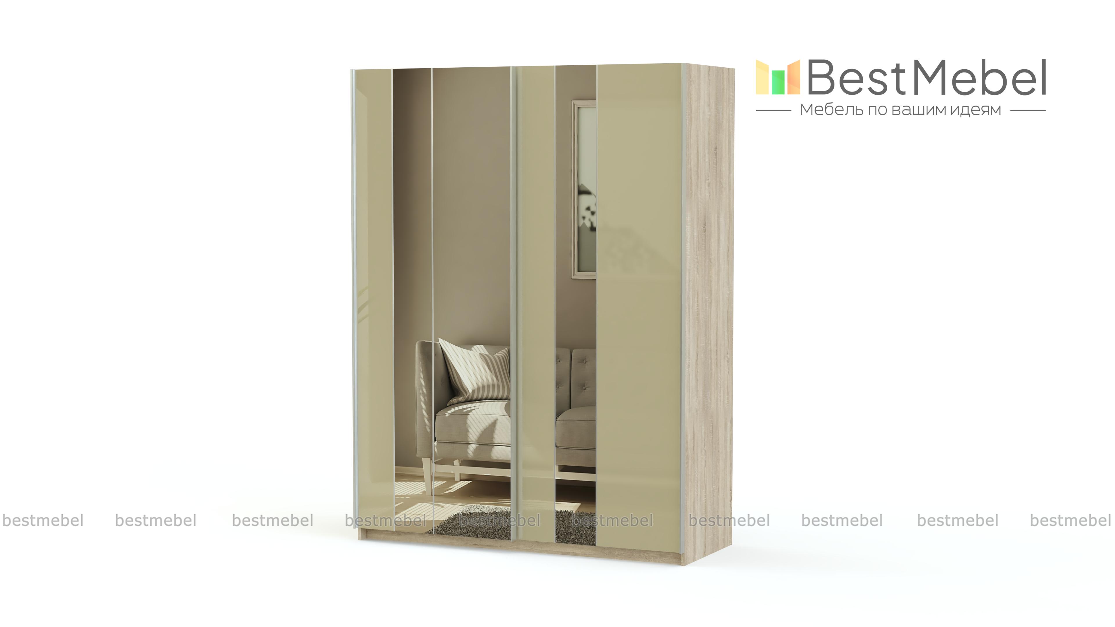 Вместительная модель Палестина 79 BMS ультрасовременного дизайна обладает всеми достоинствами минимализма. Простая форма, эргономичная фурнитура и высокое качество материалов гармонично сочетаются с функциональностью и эстетичным внешним видом. Глянцевые фасады насыщенного оттенка выполнены из окрашенного стекла и декорированы роскошными зеркалами. За раздвижными дверцами с профиль-ручками вас ждет продуманная система хранения для гардероба.