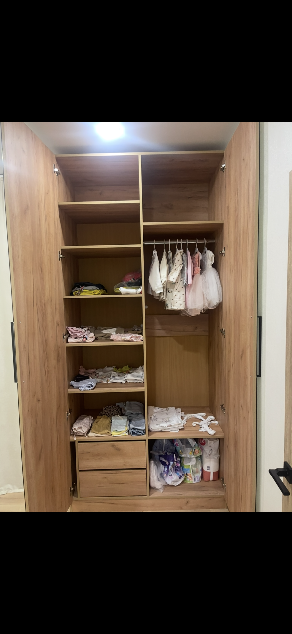 Шикарный шкаф, очень удобный, сделала наполнение под себя. Размеры тоже делала нестандартные. Особая благодарность сборщикам - приехали очень быстро, собрали за час, без вопросов и претензий, что он под потолок!!!