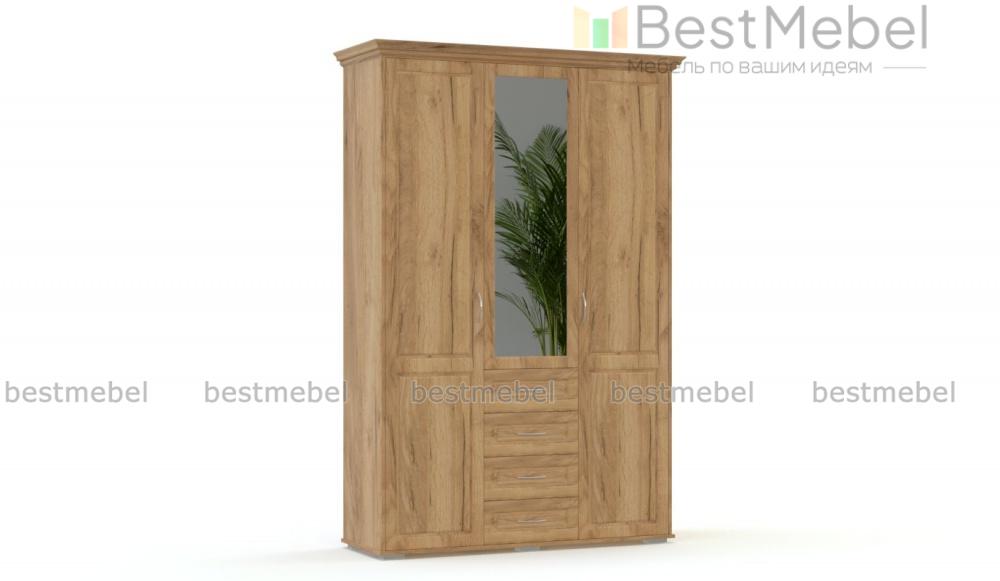 Распашной шкаф Мирма 4 BMS с классической фрезеровкой на карнизе и фасадах выполнен из материалов высокого качества в трендовом белом оттенке. Удобная система хранения трехдверного шкафа включает в себя распашные отделения с полками и штангой и четыре выдвижных ящика, оснащенных ручками-скобами. Зеркало на фасаде делает комфортным уход за собой и визуально облегчает конструкцию. Купить распашной шкаф Мирма 4 BMS для меблировки уютной современной спальни вы сможете в нашем интернет-магазине.