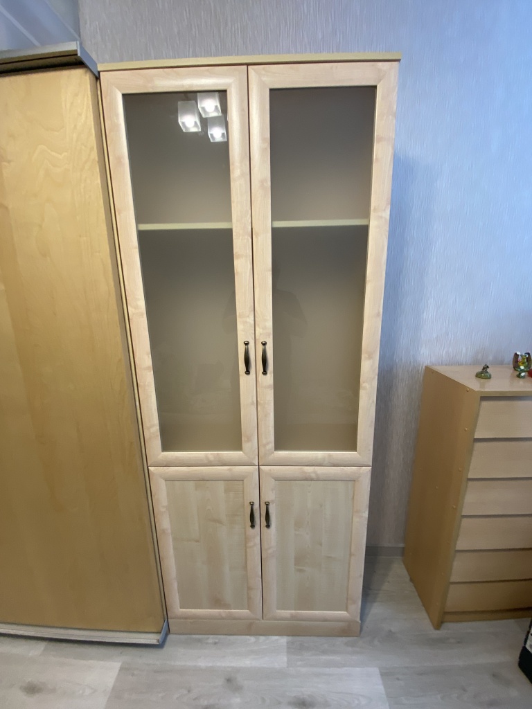 Хороший книжный шкаф. Сделали под мои размеры + выбрал дверцы с доводчиками и подрезку под плинтус, и еще ручки. Лучше собирать в конструкторе, чтобы не упустить детали изделия. Изготовление и доставка до Беларуси +/- 3 недели, собрать шкаф можно самому. Пару дней пах ДСП или краской, или еще чем-то таким, потом проветрился и сейчас все нормально. Заказ:№ 1229910.