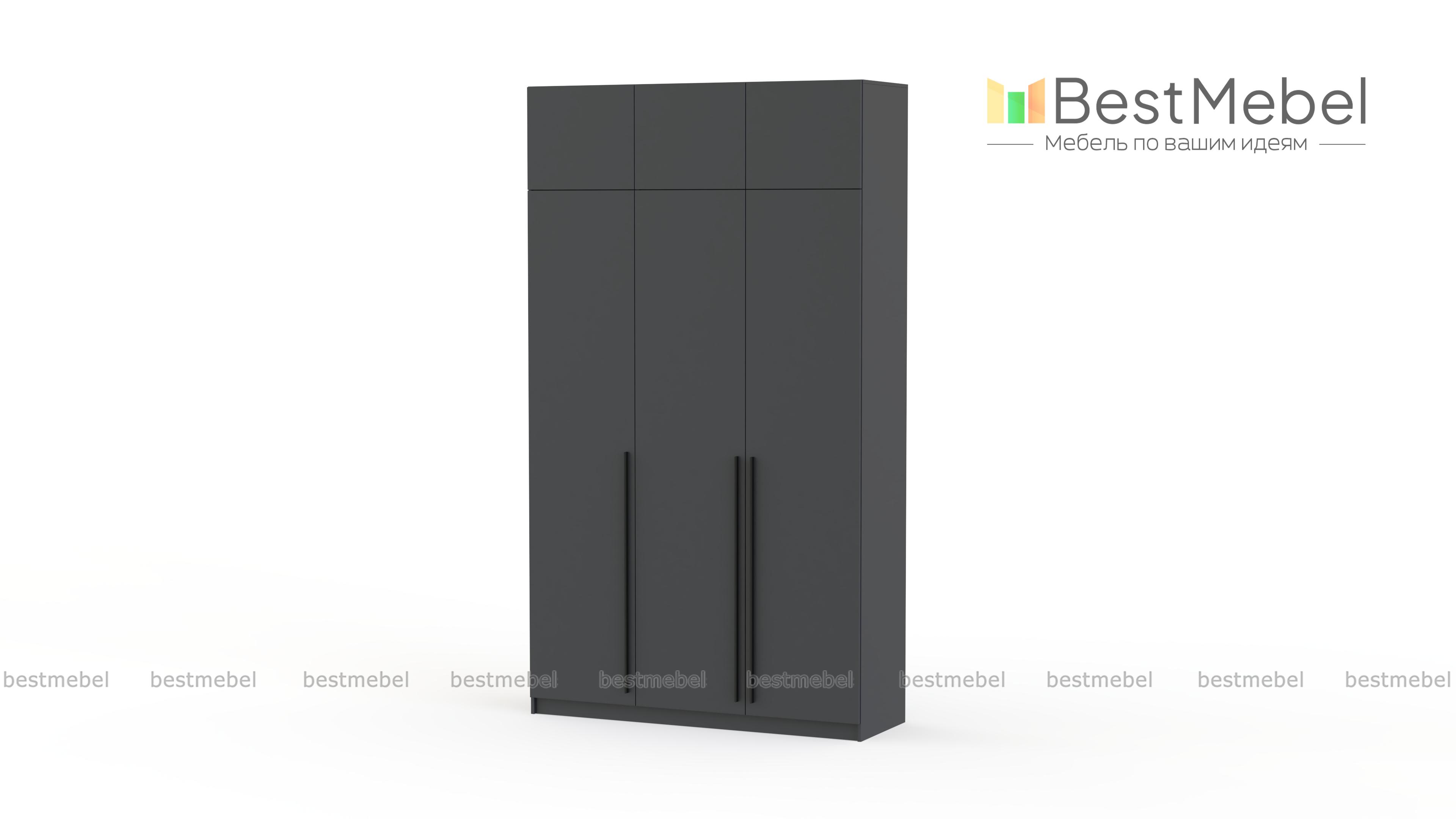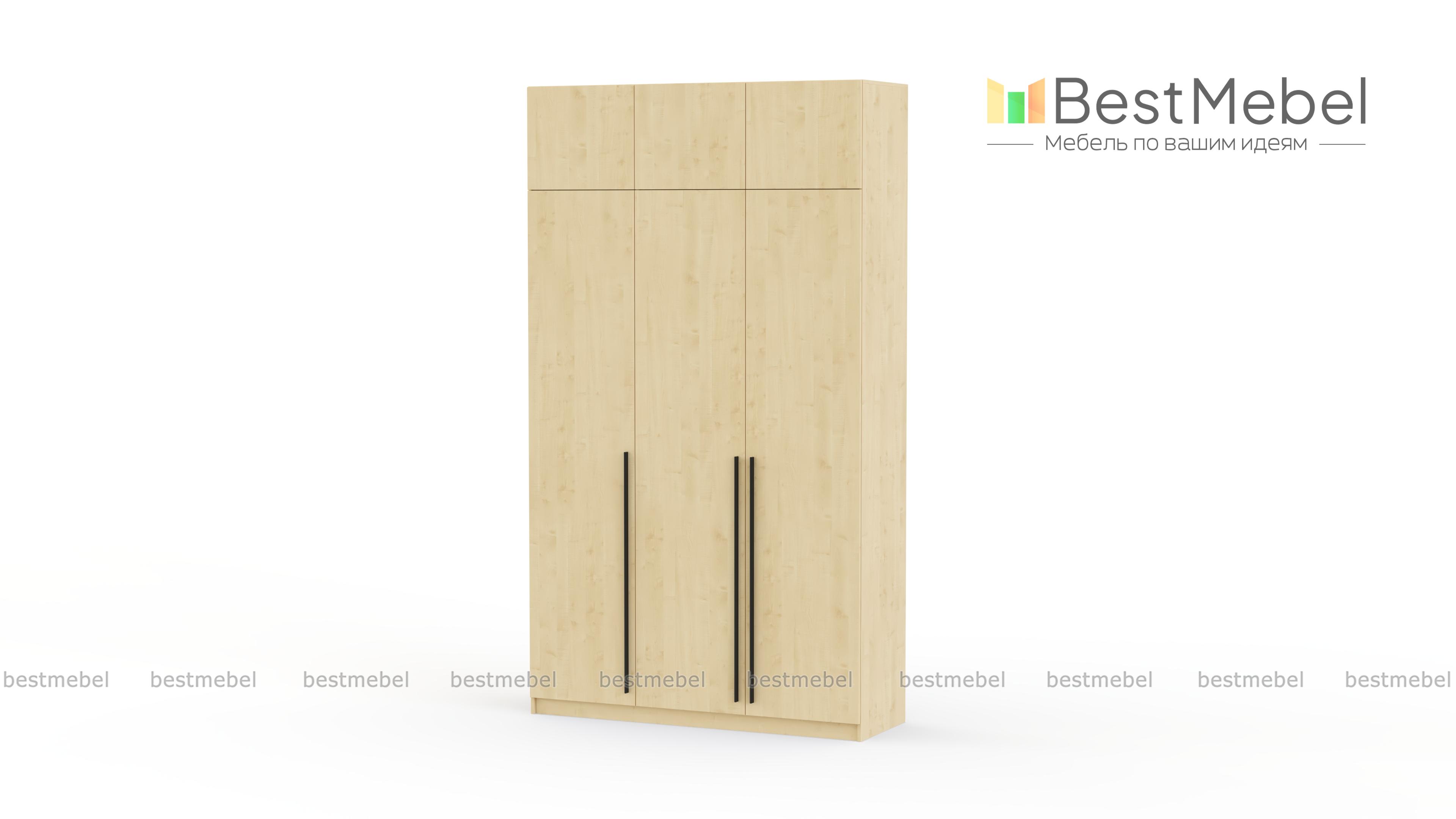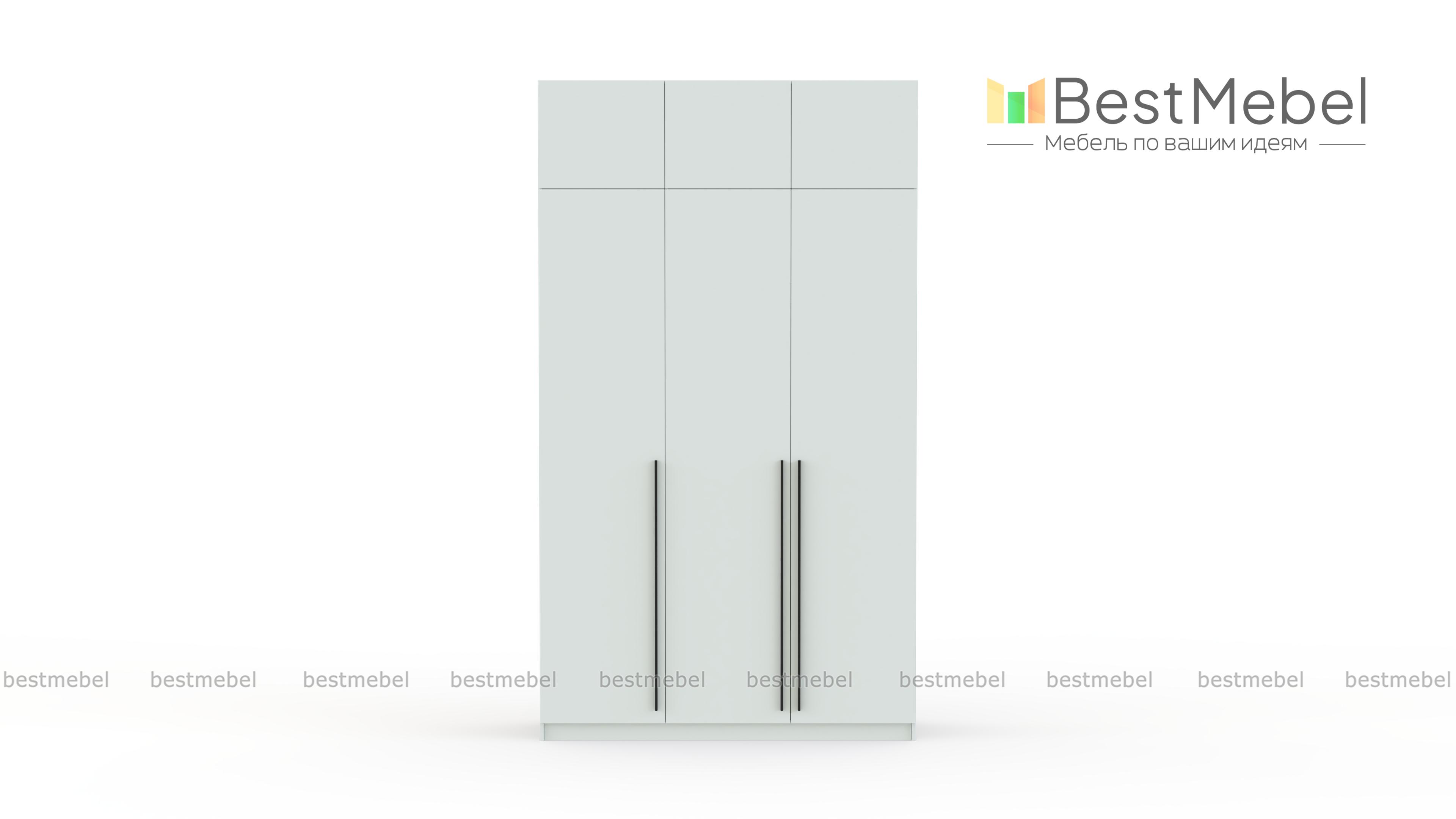 Шкаф распашной Айва 19 BMS с антресолью максимально эффективно использует пространство — от пола до потолка. Для вашего повседневного гардероба и редко используемых вещей предусмотрены просторные полки на разной высоте и платяная штанга. Сплошной фасад выполнен в классическом светлом оттенке, на дверцы установлены удлиненные контрастные ручки. Купить шкаф распашной Айва 19 BMS с изготовлением по индивидуальным размерам вы сможете на сайте нашего интернет-магазина.
