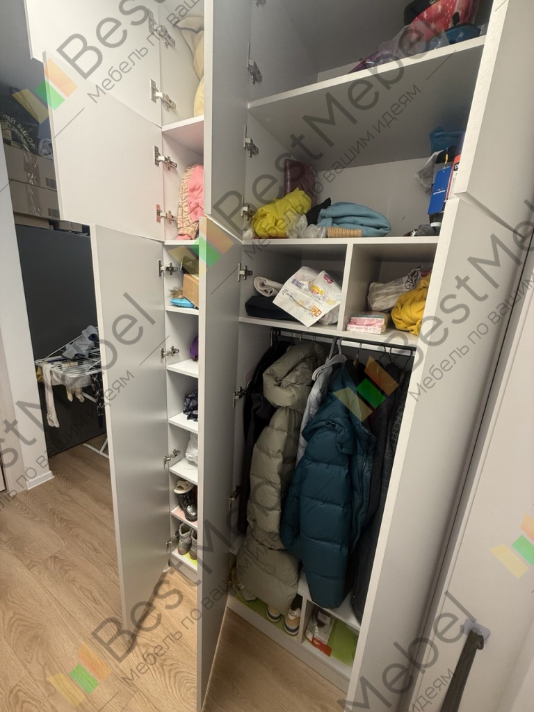Заказ на сайте оформил легко по указанным параметрам, менеджер оперативно связался и подтвердил размеры. Доставка бесплатная до парадной, подъем на этаж осуществляется за дополнительную плату. Заказ прибыл хорошо упакованный, ничего не повредилось. Собрал все сам; в комплекте была инструкция и необходимая фурнитура. В целом, процесс оказался простым и занял один день. В распашном шкафу Заказ 00000195837, изделие ЭСКИЗ №00000195837 Шкаф распашной Остин Нео 17 BMS (1180х2500х565) хотелось бы побольше высоты для курток и пальто, иначе они не влезают. Также в инструкции не было сказано, что есть накладные и полунакладные петли, дверцы первоначально собрали с щелями, пришлось снимать и перевешивать все заново. В целом, доволен покупкой: шкаф соответствует моим размерам ниши и имеет доступную цену. В целом я оцениваю магазин BestMebel на 5 баллов — от оформления заказа на сайте до конечного результата сборки стеллажей и распашного шкафа. Товары соответствуют описанию, качество оправдывает цену, я доволен. Спасибо!