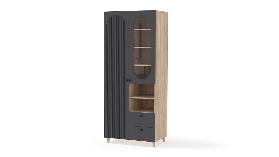 Шкаф распашной Рене 5 BMS станет не только местом хранения вещей, но и элементом дизайна современного дома. Конструкция шкафа хорошо продумана: закрытое отделение для одежды слева дополнено расположенными справа полками, ящиками и витриной. Внешне легкий благодаря высоким ножкам, шкаф со стильным темным оформлением фасада украшен овальным вырезом и фрезеровкой. Купить шкаф распашной Рене 5 BMS вы сможете в нашем интернет-магазине с индивидуальным подбором цвета и габаритов.