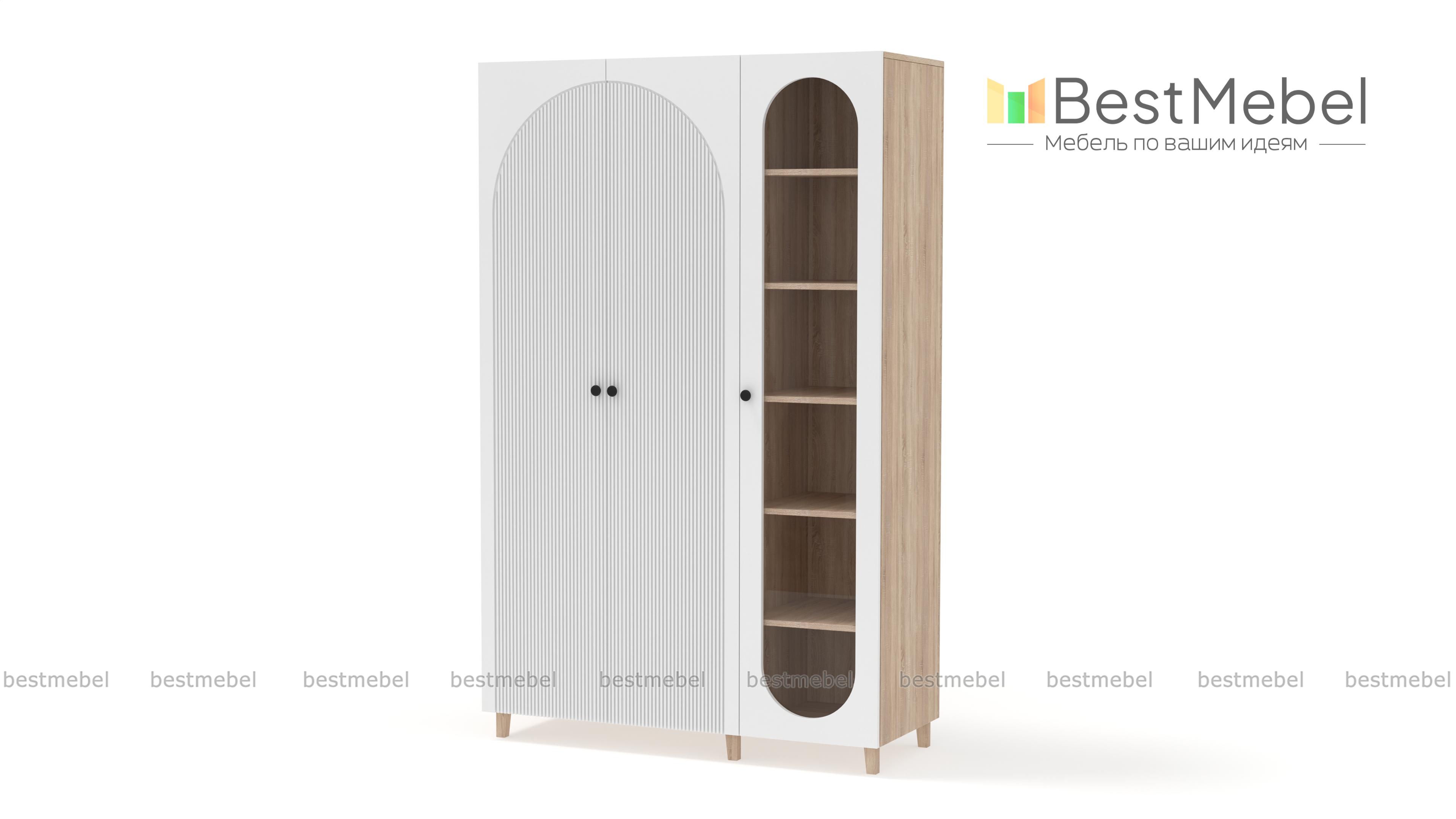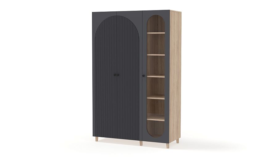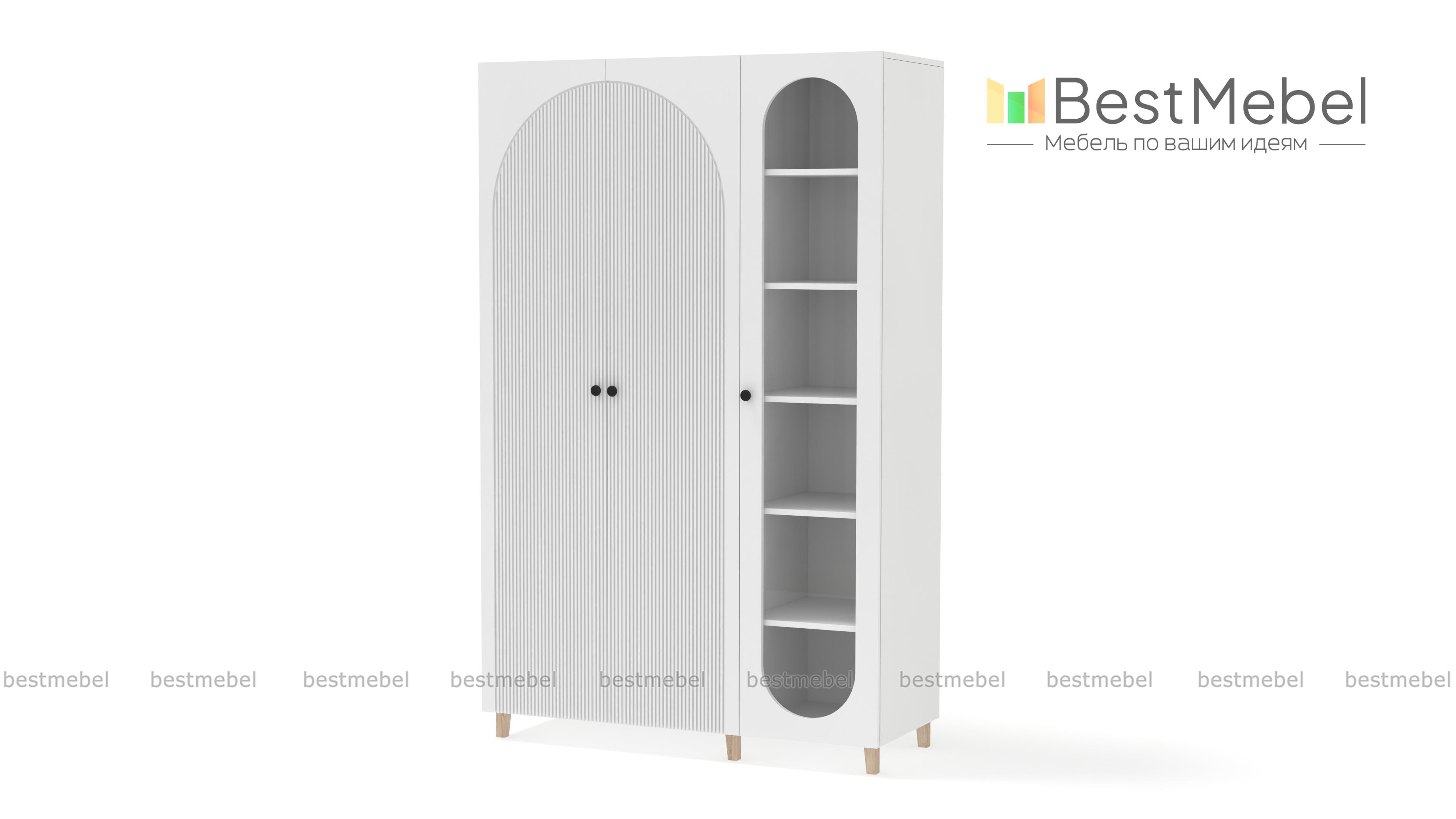 Шкаф распашной Вивьен 21 BMS объединил платяное отделение с двумя дверцами и однодверную витрину. Многофункциональная модель для детской или гостиной позволяет разместить не только одежду, но и книги, посуду, разнообразные мелочи и декор. Каркас и ножки в древесных тонах дополнены износостойкими фасадами из МДФ с фигурными вырезами и стильной фрезеровкой. Купить шкаф распашной Вивьен 21 BMS в любом удобном размере и оттенке из каталога приглашаем в наш интернет-магазин.