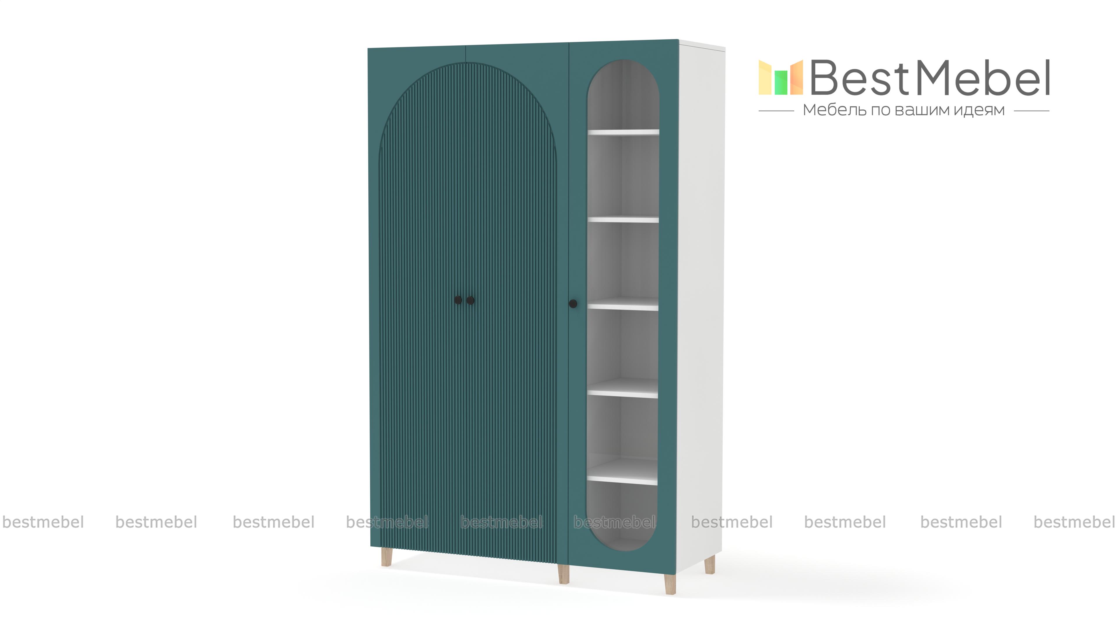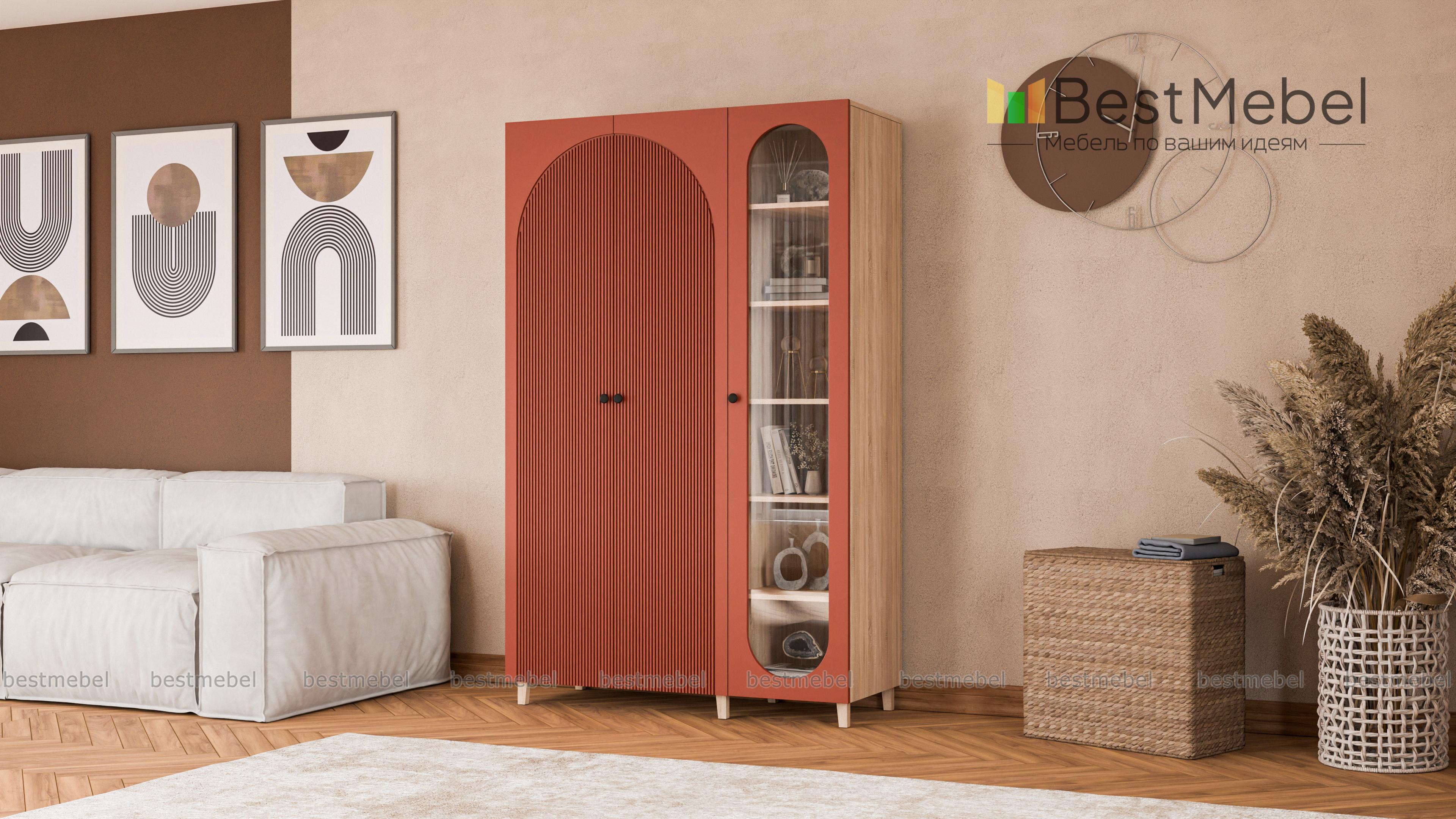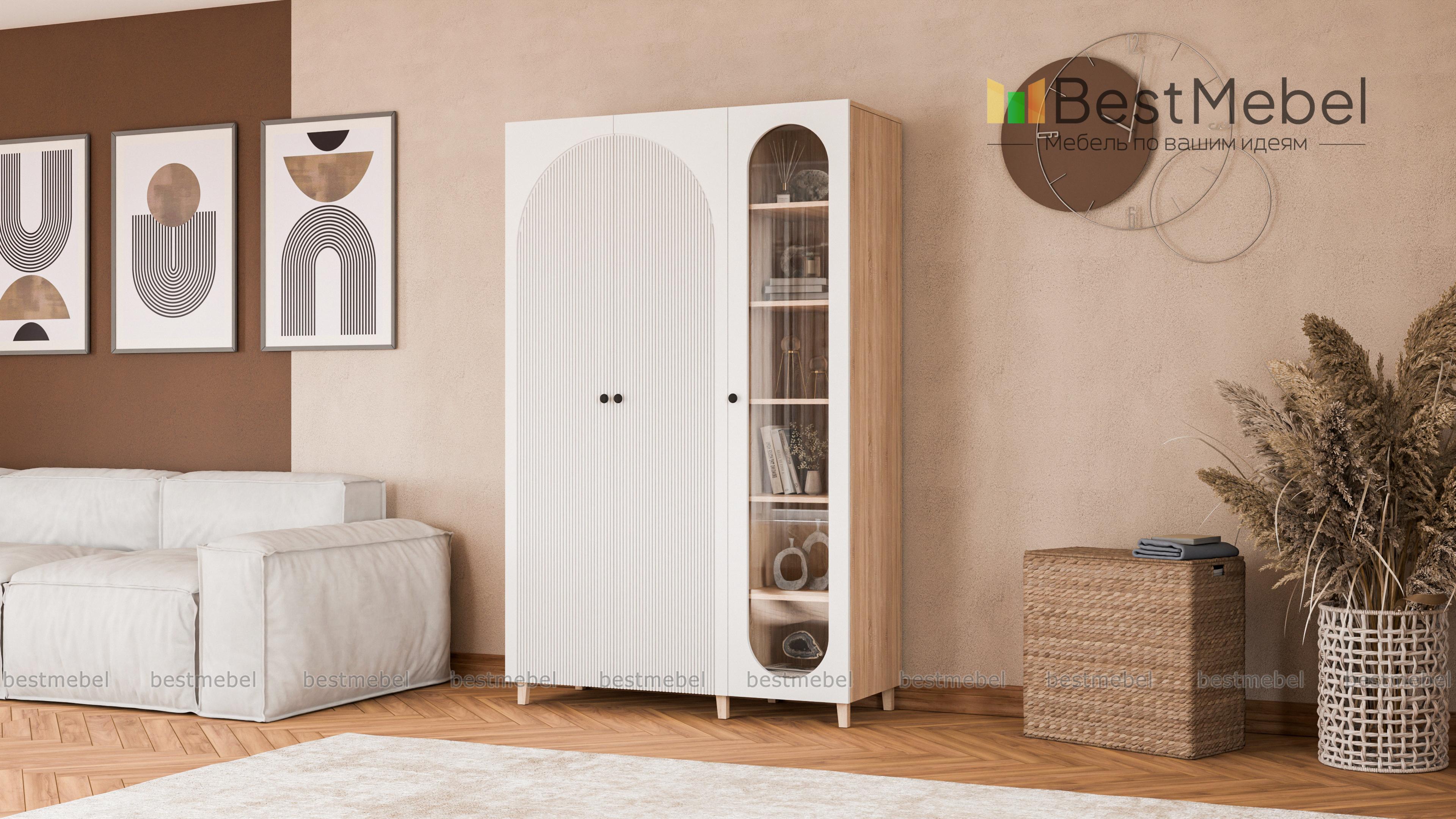 Шкаф распашной Вивьен 21 BMS объединил платяное отделение с двумя дверцами и однодверную витрину. Многофункциональная модель для детской или гостиной позволяет разместить не только одежду, но и книги, посуду, разнообразные мелочи и декор. Каркас и ножки в древесных тонах дополнены износостойкими фасадами из МДФ с фигурными вырезами и стильной фрезеровкой. Купить шкаф распашной Вивьен 21 BMS в любом удобном размере и оттенке из каталога приглашаем в наш интернет-магазин.