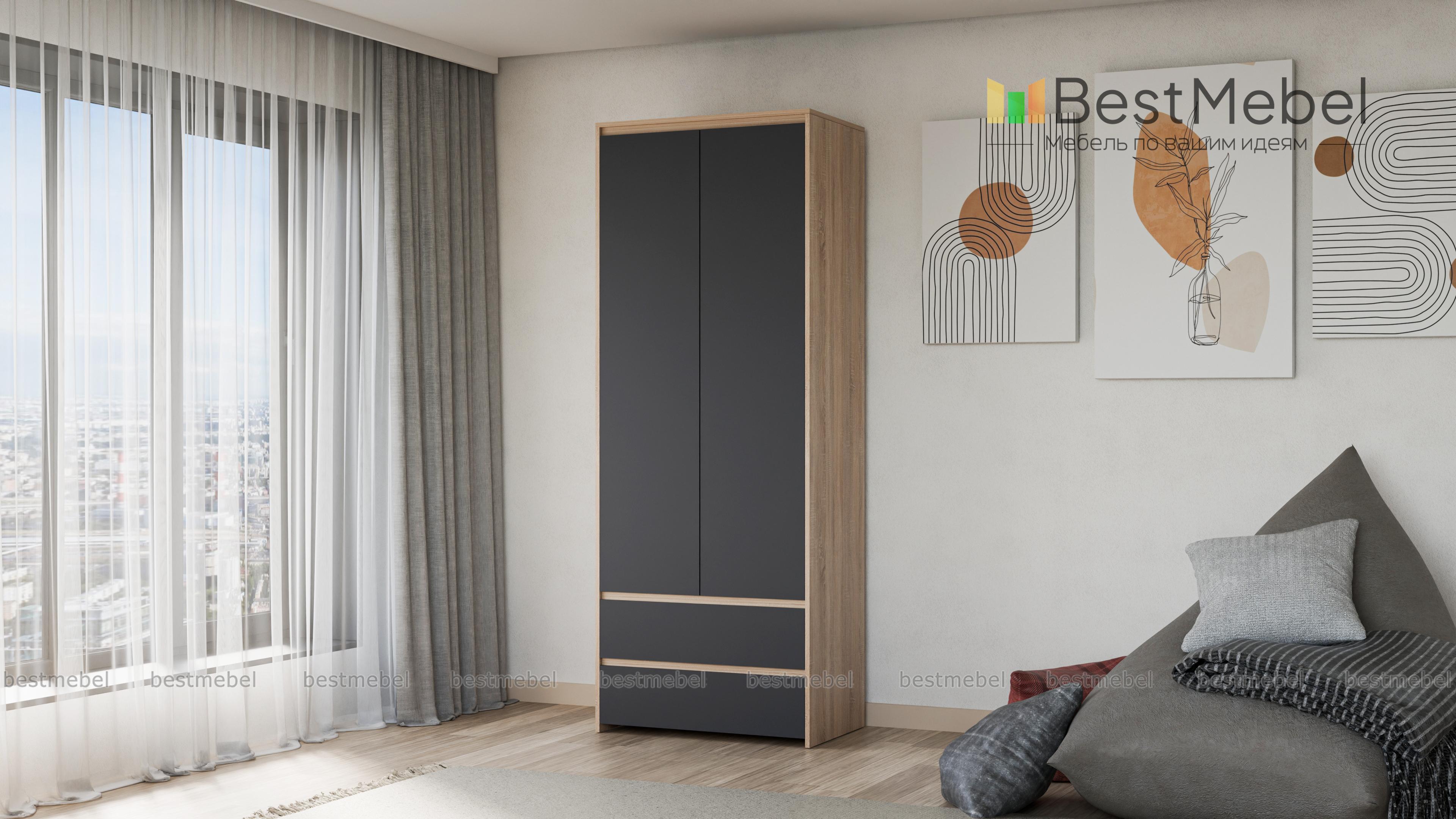 Шкаф REG 2D2S BMS отличается простотой и элегантностью современной вещи в стиле минимализм. Лаконичный дизайн модели с гладкими фасадами без ручек подчеркивает благородный темный оттенок. В основании расположены два вместительных выдвижных ящика, за распашными дверцами – просторные полки для одежды. Износостойкие материалы и надежная фурнитура обеспечат комфортное пользование и долгий срок службы. Купить Шкаф REG 2D2S BMS вы сможете в нашем интернет-магазине по лучшей цене.