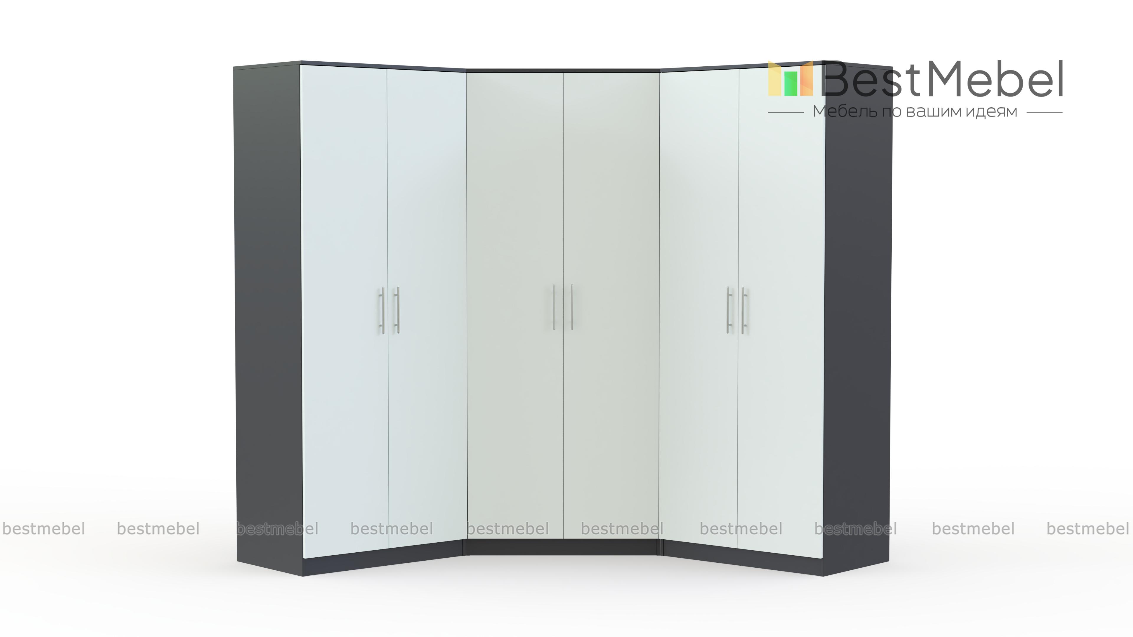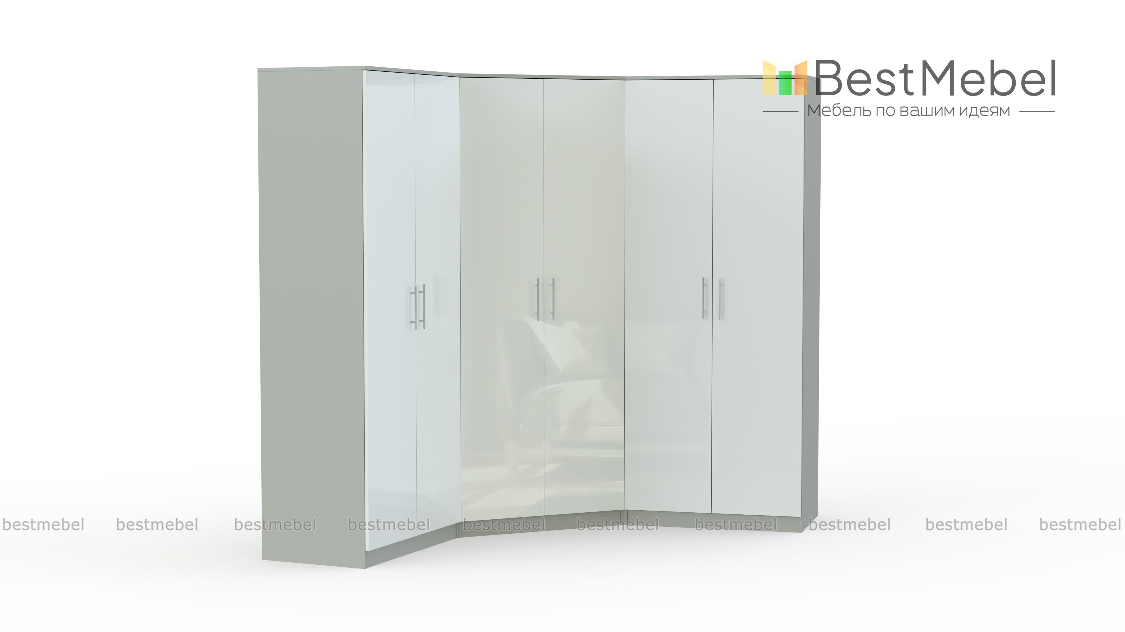 Шкаф угловой Глянец 21 BMS бережно разместит гардероб и составит стильный ансамбль с другой мебелью в современной стилистике. Эффектная композиция в нежных светлых цветах включает в себя угловой двухдверный шкаф и два прямых, оснащенных платяными и бельевыми отделениями. Гладкие сплошные фасады, оснащенные удобными ручками-рейлингами, отличаются износостойкостью, и шкаф будет долго радовать вас эстетичным видом. Купить шкаф угловой Глянец 21 BMS приглашаем в наш интернет-магазин с выбором цвета и размеров.