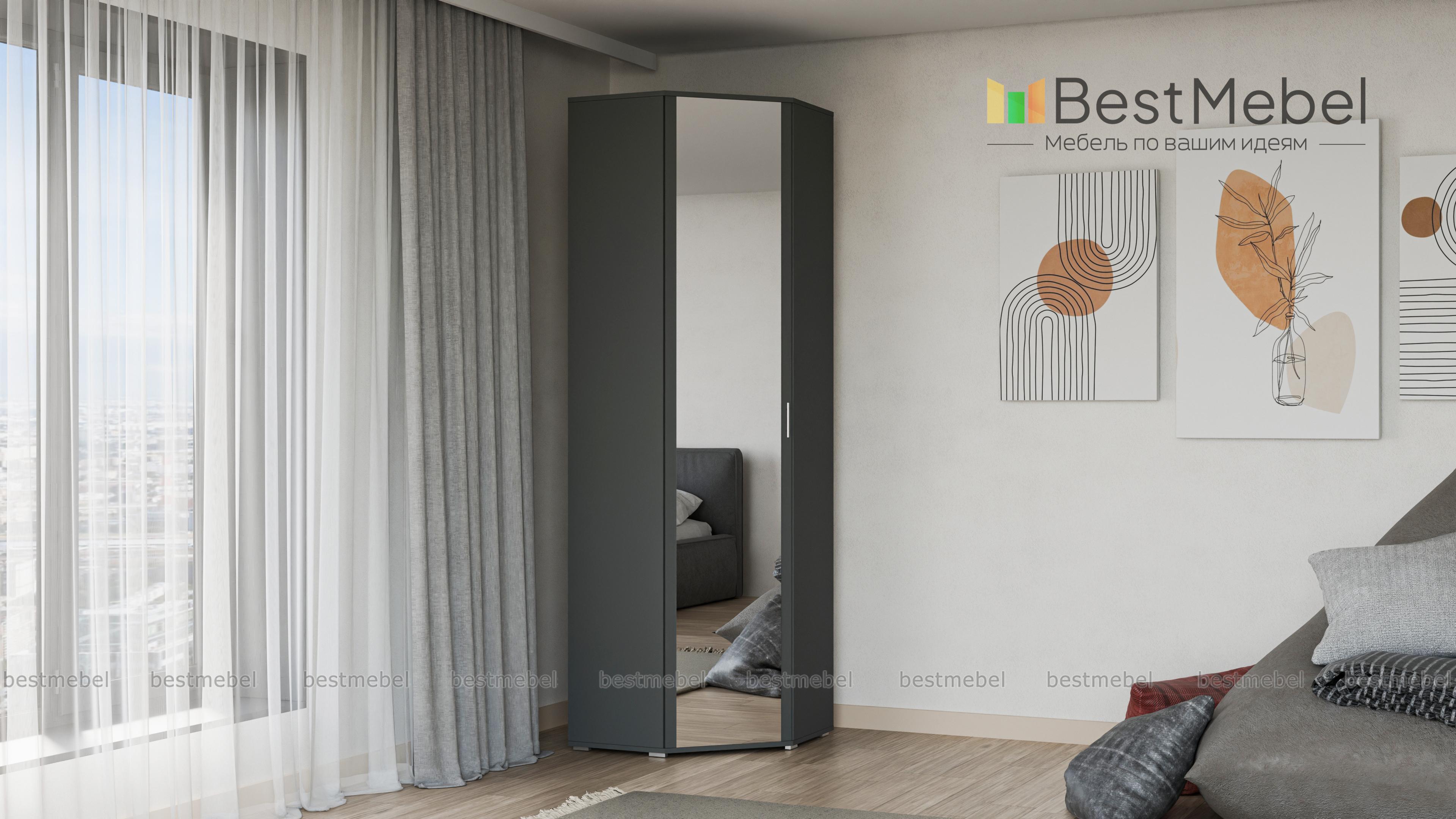 Шкаф угловой Ирис 27 BMS станет достойным украшением комнаты. Аккуратный шкаф необычной формы органично смотрится и как самостоятельный предмет мебели и как часть мебельного набора. Однотонная модель дополнена большим зеркалом, что понравится прекрасным модницам. Вместительный шкаф будет желанным атрибутом и в прихожей и в спальне. Благодаря наличию полок и штанги в нем уместится очень много вещей разного рода. Купить шкаф угловой Ирис 27 BMS по низкой цене можно на нашем официальном сайте прямо сейчас.