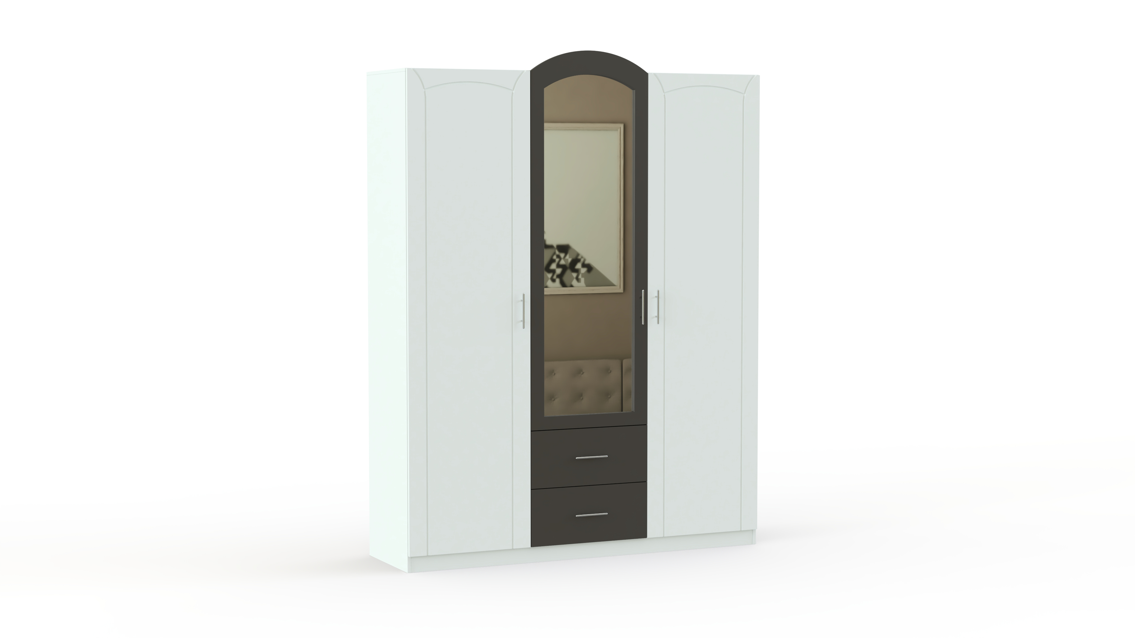 Спальня Марта 01 BMS – светлый и визуально легкий комплект с элементами стиля ар-деко. Модель в сочетании темных и светлых древесных тонов, декорированная овальными вставками, скругленными линиями и фрезеровкой, придется по душе тем, кто предпочитает лаконичный и элегантный дизайн. В комплект входят просторная кровать с прикроватными тумбами, комод с выдвижными ящиками, навесное зеркало и вместительный трехдверный шкаф для белья и одежды. Купить спальню Марта 01 BMS приглашаем по лучшей цене в наш интернет-магазин.