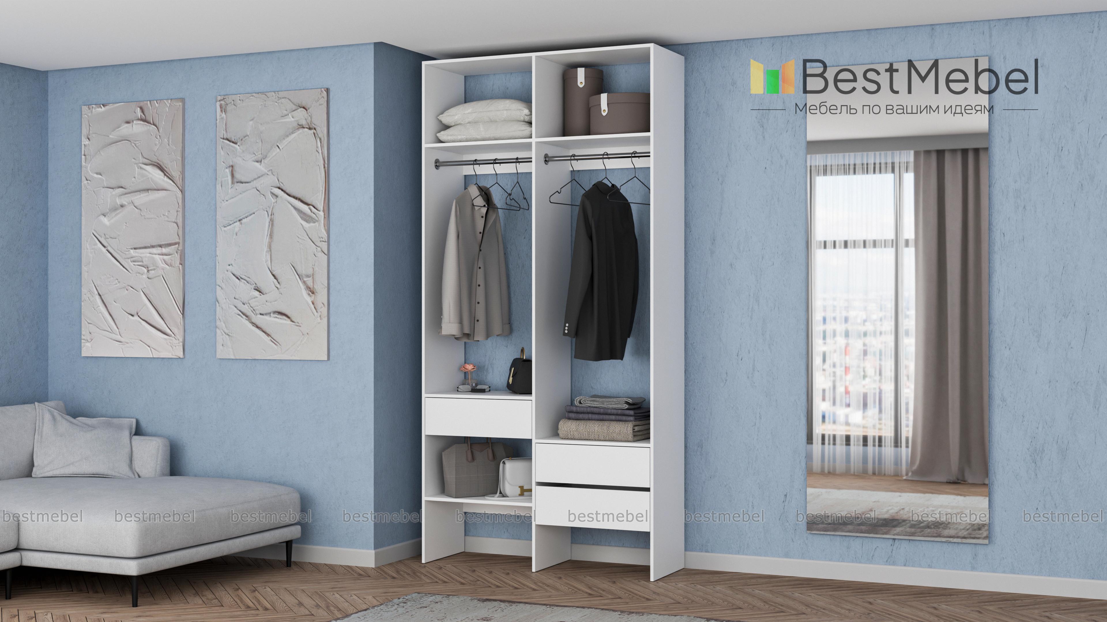 Стеллаж для одежды Мирта 43 BMS будет уместен в прихожей, гардеробной комнате, небольшой спальне. Открытый и негромоздкий стеллаж в светлом оттенке — отличная альтернатива шкафу. Конструкция из двух отделений со штангами, полок и трех выдвижных ящиков, расположенных на разной высоте, обеспечивает порядок и удобство доступа к вещам. Купить стеллаж для одежды Мирта 43 BMS в подходящем именно вам размере и цвете можно недорого на сайте нашего интернет-магазина.
