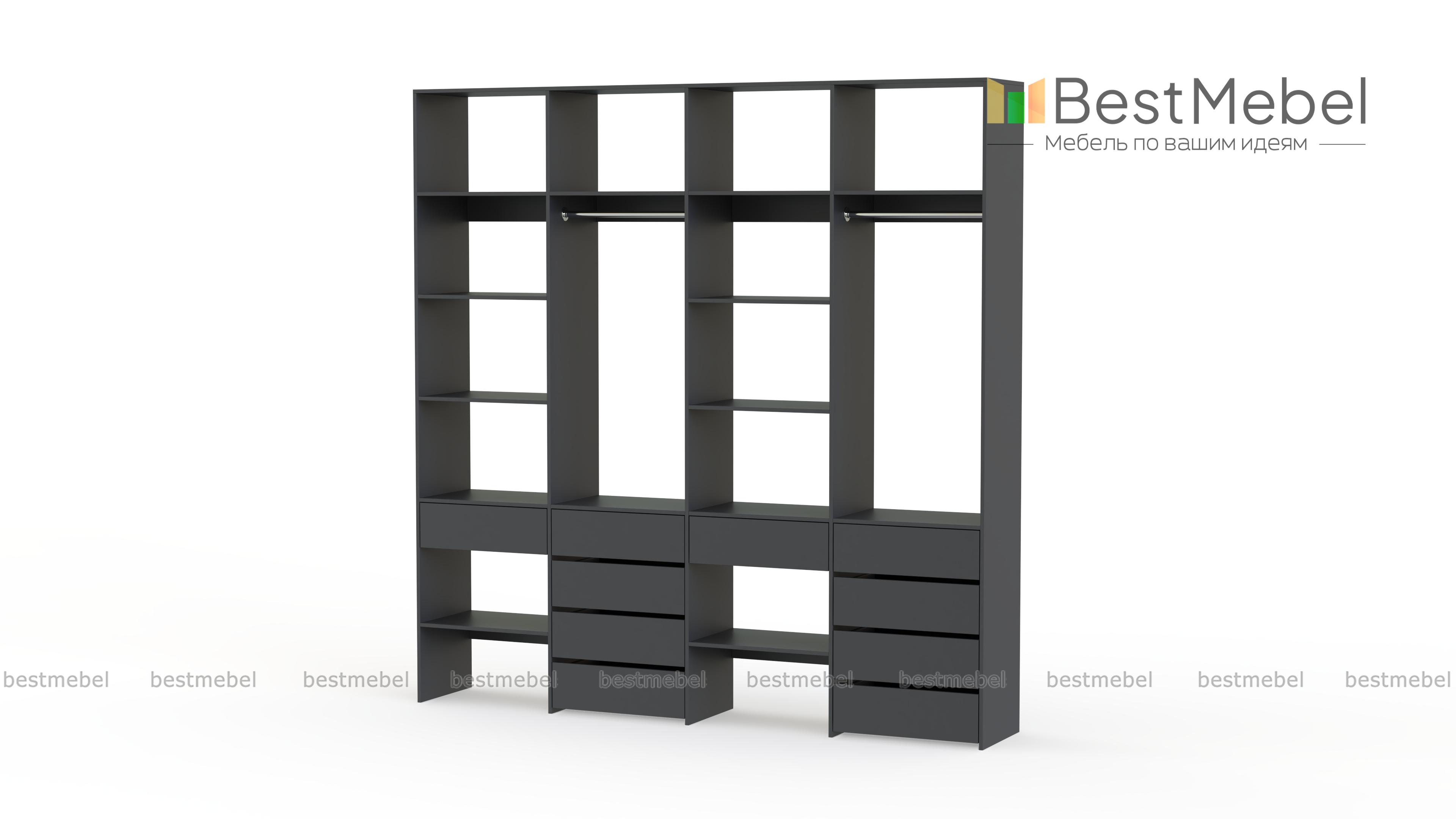 Стеллаж для одежды Мирта 61 BMS обеспечит удобное хранение вашим вещам, помогая поддерживать порядок в доме. В конструкции вместительного четырехсекционного стеллажа чередуются открытые полки и штанги, а выдвижные ящики выполняют функцию комода. За ламинированными поверхностями легко ухаживать и стеллаж надолго сохранит свой эстетичный вид. Купить стеллаж для одежды Мирта 61 BMS в необходимом размере и подходящем вашему интерьеру оттенке вы сможете в нашем интернет-магазине.