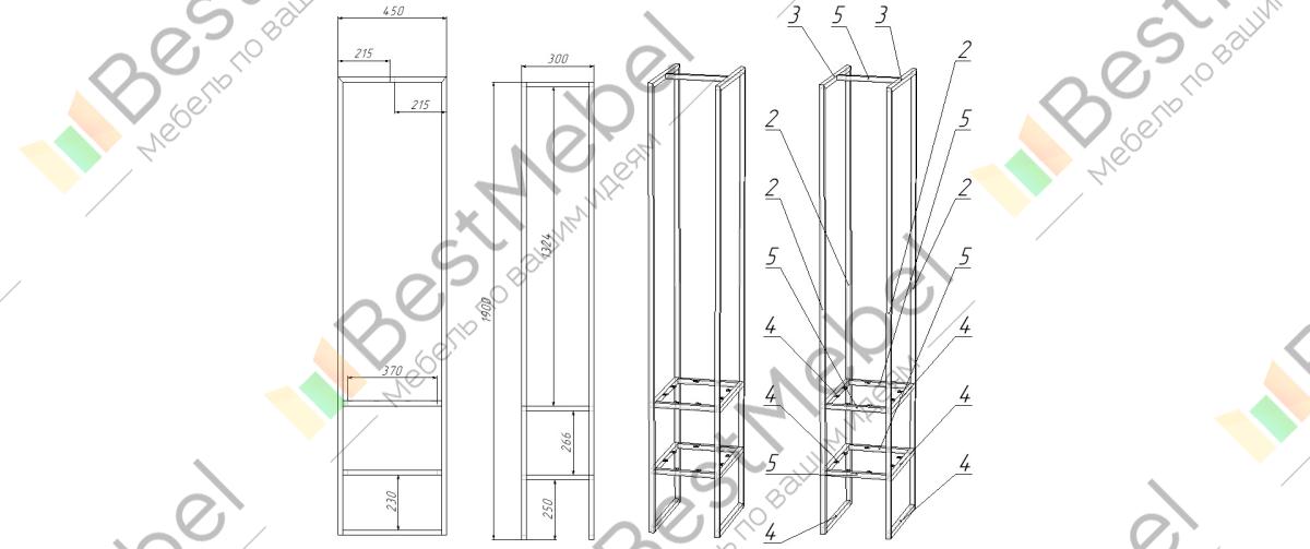 | Конструкция | С полками, Открытая, Без задней стенки |