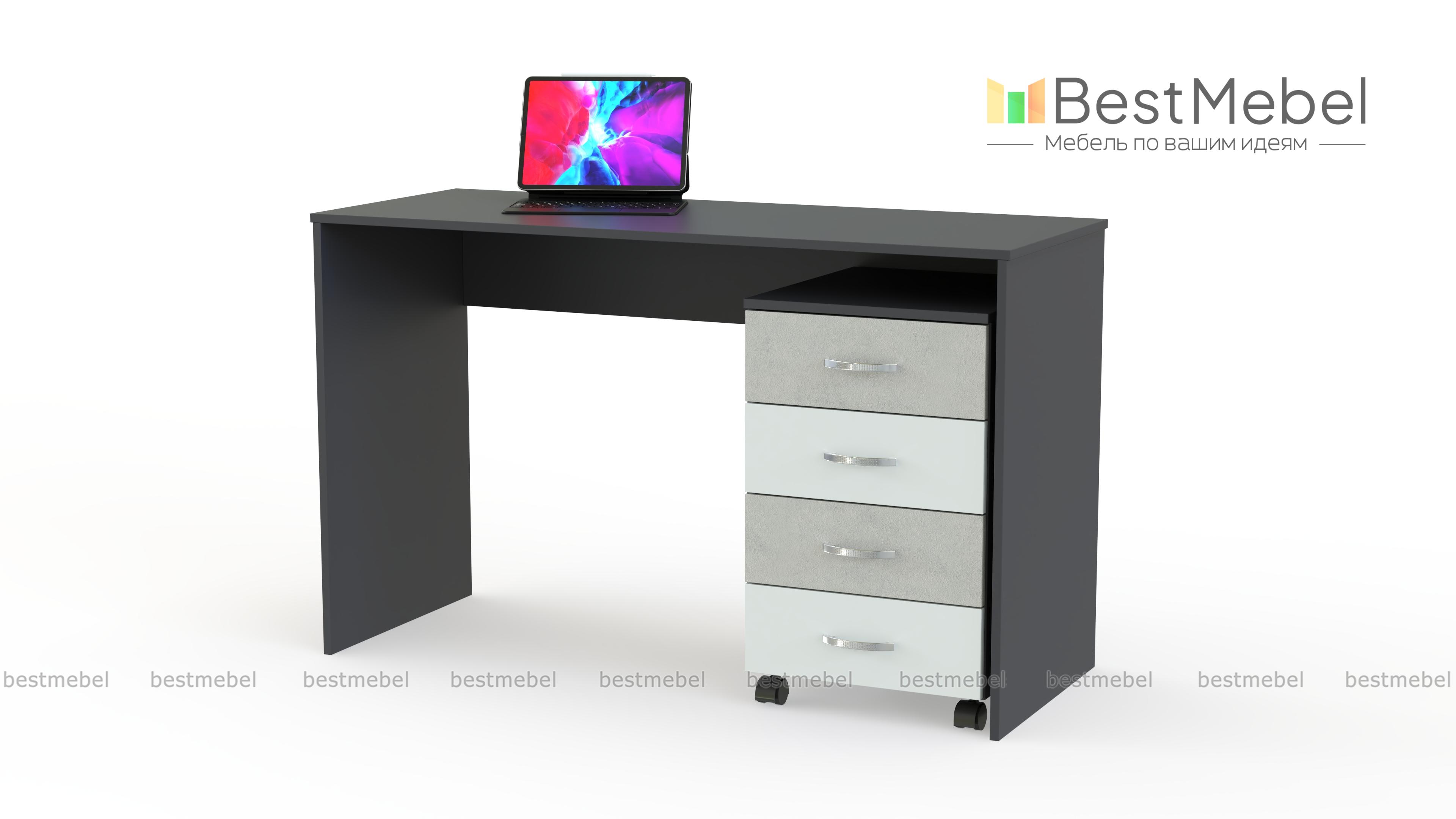 Стол Детский-5 BMS – современная модель для учебы и творческих занятий, простая и функциональная. Письменный стол с классической прямоугольной столешницей и широкими боковинами дополнен выкатной тумбой с выдвижными ящиками, которую вы сможете установить с любой стороны и разместить под рукой канцелярские принадлежности. Экологичные материалы и нейтральная расцветка в светлых тонах с контрастными вставками делают стол отличным вариантом для детской комнаты. Купить стол Детский-5 BMS вы сможете в нашем интернет-магазине.