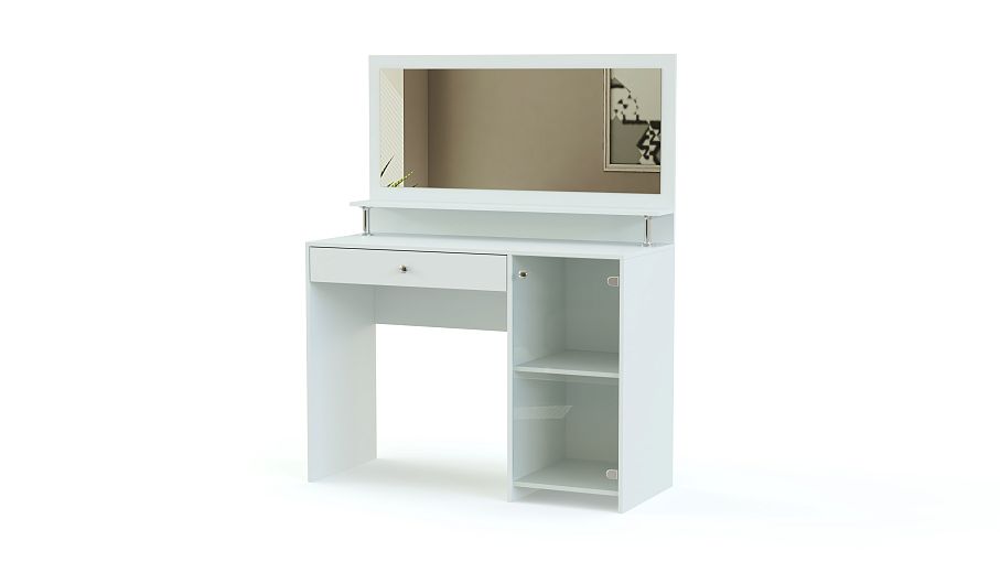 Очень симпатичная, стильная и удобная модель станет настоящим подарком для каждой женщины. Туалетный набор Тет-А-Тет Премиум BMS довольно вместительный. Он имеет специальное место под большое зеркало, под зеркалом расположена элегантная полочка для парфюмерии на хромированных подставках. Кроме этого есть большая тумба с полкой и выдвижной ящичек под столешницей. Все это дает возможность удобно расположить массу личных вещичек. У нас Вы можете не только заказать туалетный набор Тет-А-Тет Премиум BMS нужного Вам цвета, но и указать требуемые Вам размеры.