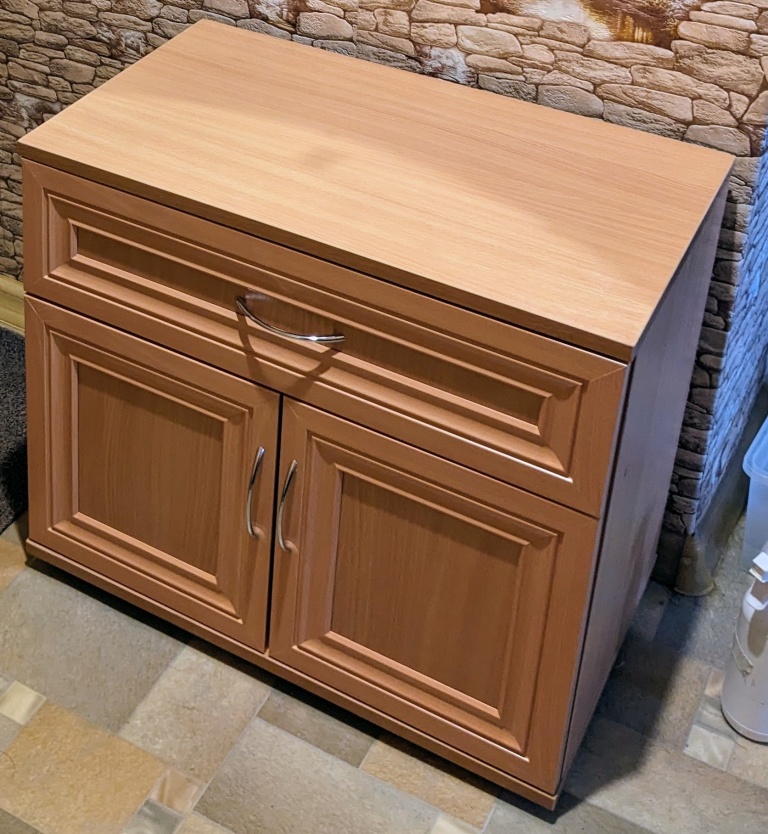 Нужна была недорогая тумбочка ровно в размер внезапно понадобившегося морозильника и в цвет остальной мебели комнаты. Точно в цвет я не попала, но максимально близко, а вот характеристики самой тумбы выше всяких похвал. Детали изготовлены и все отверстия насверлены очень точно, даже нашими кривыми руками собралась ровно. Стоит очень устойчиво, динамический вес запрыгивающих через полкомнаты котов (4, 5 и 7 кг) поколебать её не в состоянии. Я просила сделать две полки с усиленным креплением под тяжёлое наполнение, и всё было сделано как я хотела, полки на конфирматах с усиливающей поддерживающей планкой. Выглядит достойно, по качеству никаких претензий, большое спасибо изготовителям и внимательным девушкам-менеджерам. А то, что на сайте можно менять размеры изделия, его цвет и наполнение - вообще подарок судьбы для заказчика. Большое спасибо.