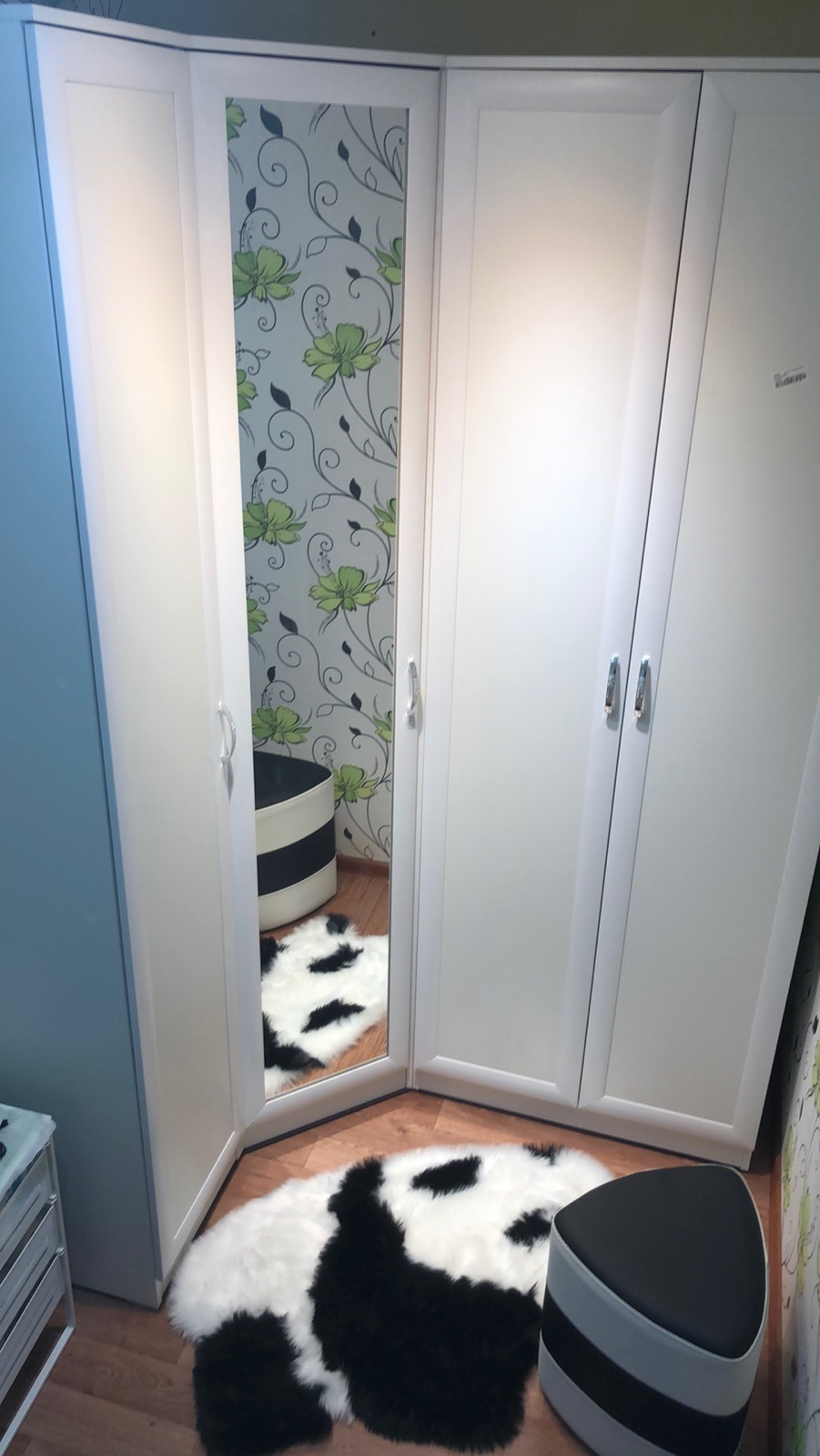 Давно засматривалась на этот комод. Очень переживала, что не будет видно ног, но зря, все видно, в полный рост даже если подойти почти впритык. По качеству, как и вся мебель данного бренда, могло быть и лучше. Зеркало стационарное, угол наклона не меняет, пожалуй самое хлипкое место в конструкции. Если заходите двигать с мета на место обязательно усиливайте конструкцию. Сам комод очень вместительный, 6 ящиков. Фурнитура нормальная.