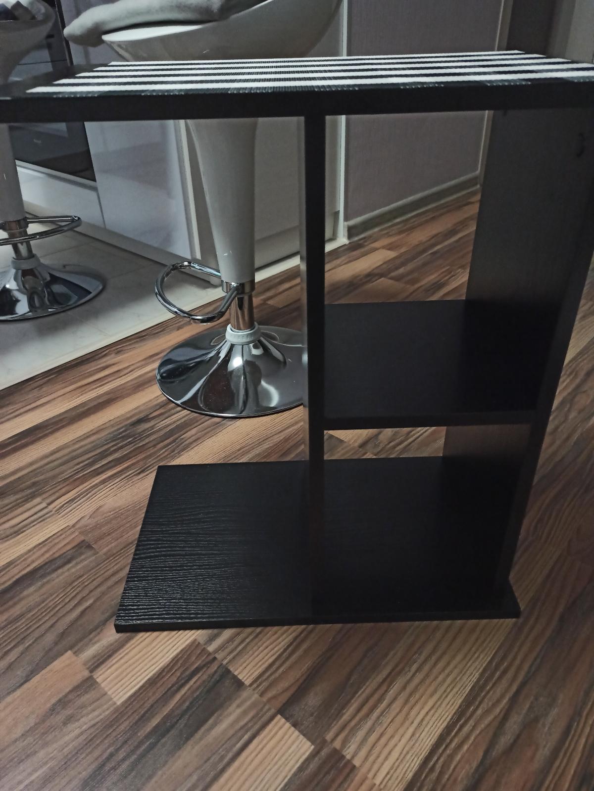 Стол очень интересный по дизайну: хромированные штанги украшают стол, добавляют визуально легкости ему. Несмотря на компактные размеры, стол достаточно функционален, есть полочки, что очень удобно - все под рукой. Собрался без проблем. Цена и качество особенно радуют. Спасибо.
