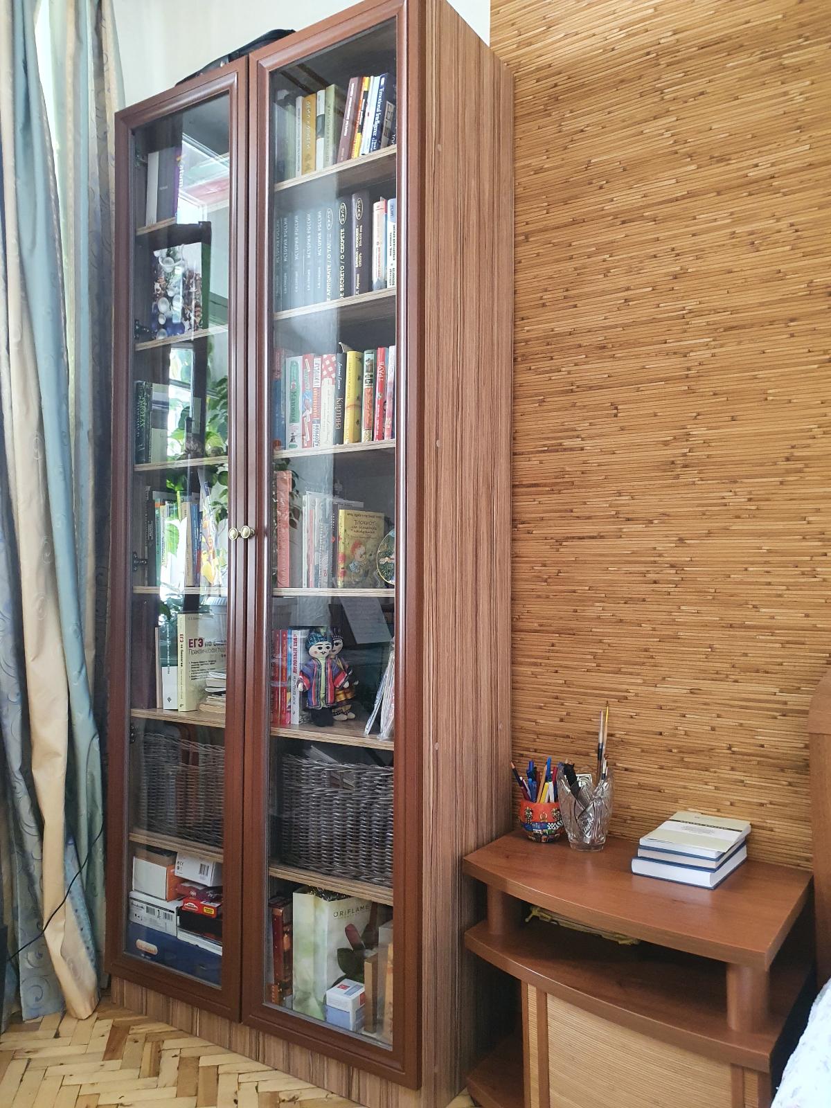 Зимой заказали книжный шкаф, номер заказа: 00000330912, шкаф отлично вписался в интерьер, цвет подошел по гамме к обоям и мебели. Смотрится стильно. Шкаф очень удобный, книги встают в 2 ряда, удобно, что можно выбрать размер. Я выбрала 2,2×0,4×0,9, самое то. Шкаф можно прикрепить к стене, но я не стала, в этих размерах он вполне устойчив. Производитель рекомендует наклейки снимать при помощи фена. Совет хороший, они легко отходят, но может остаться клей и даже цвет с нее. Поэтому если будете заказывать что-то белое, рекомендую использовать после него растительное масло и затем яблочный уксус или любое чистящее средство. Порадовала сборка - приехали через час после звонка, быстро и четко все собрали. Спасибо!