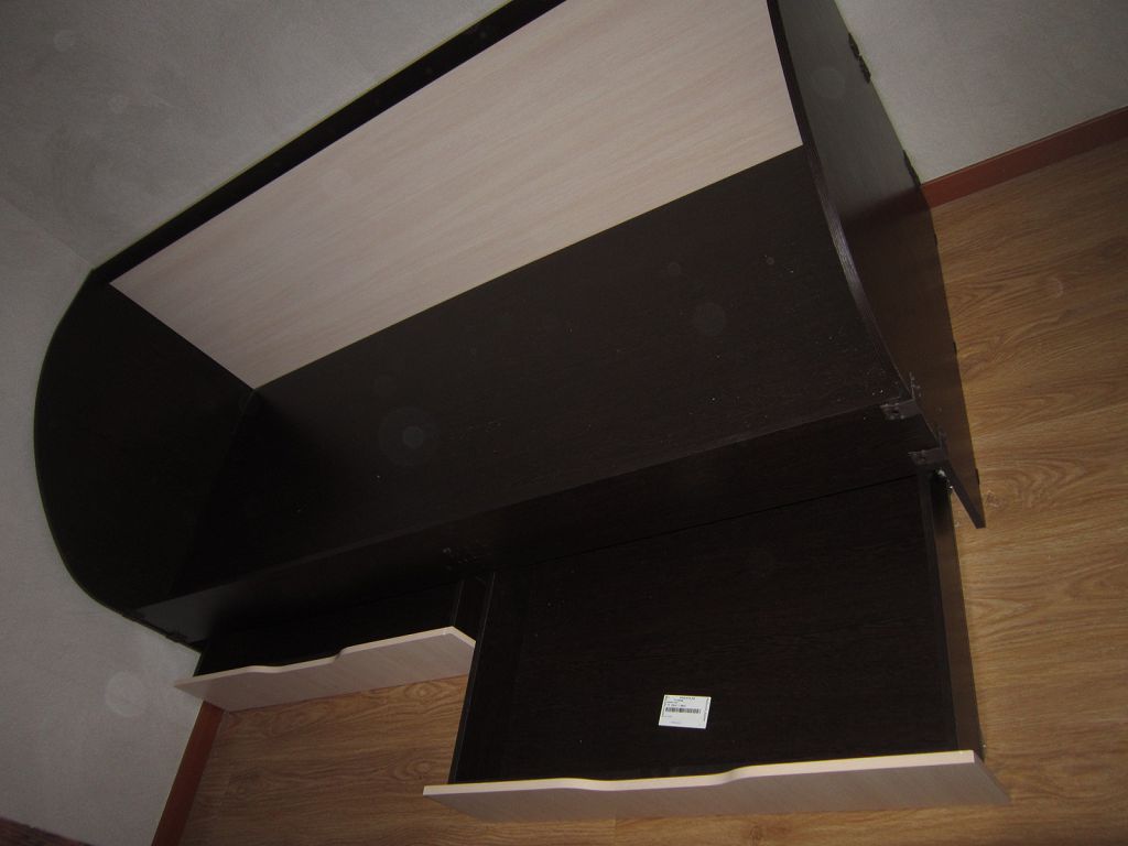 Стол просто отличный. Очень крепкий. Соединительных болтов не жалели.  Полка для клавиатуры удобная.  Очень вместительный. Цвет белое дерево, ламинирование качественное.  Пользуюсь 2,5 месяца. Все нравится. Рекомендую.
