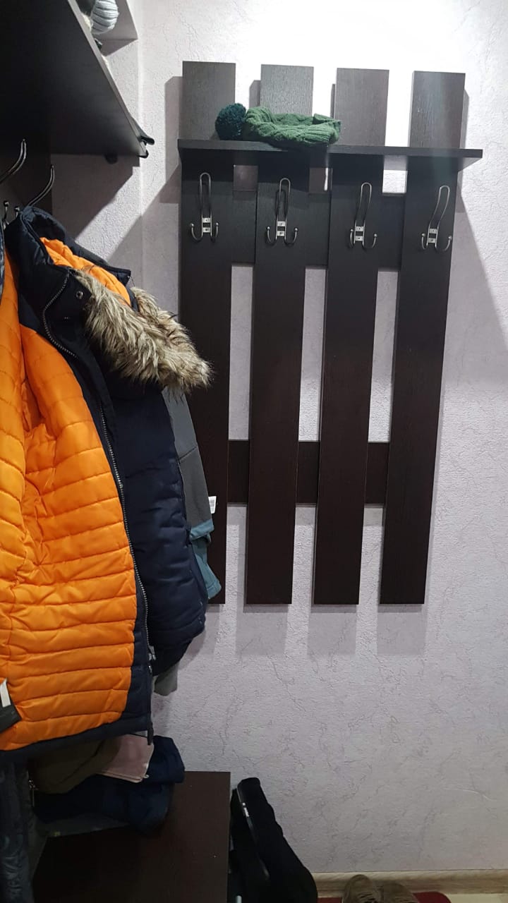 Вешалка очень компактная и удобная! Подходит для небольшой прихожей, меня устроило и качество и дизайн.Получила ее в качестве подарка за 1 руб.при заказе прихожей и углового шкафа.